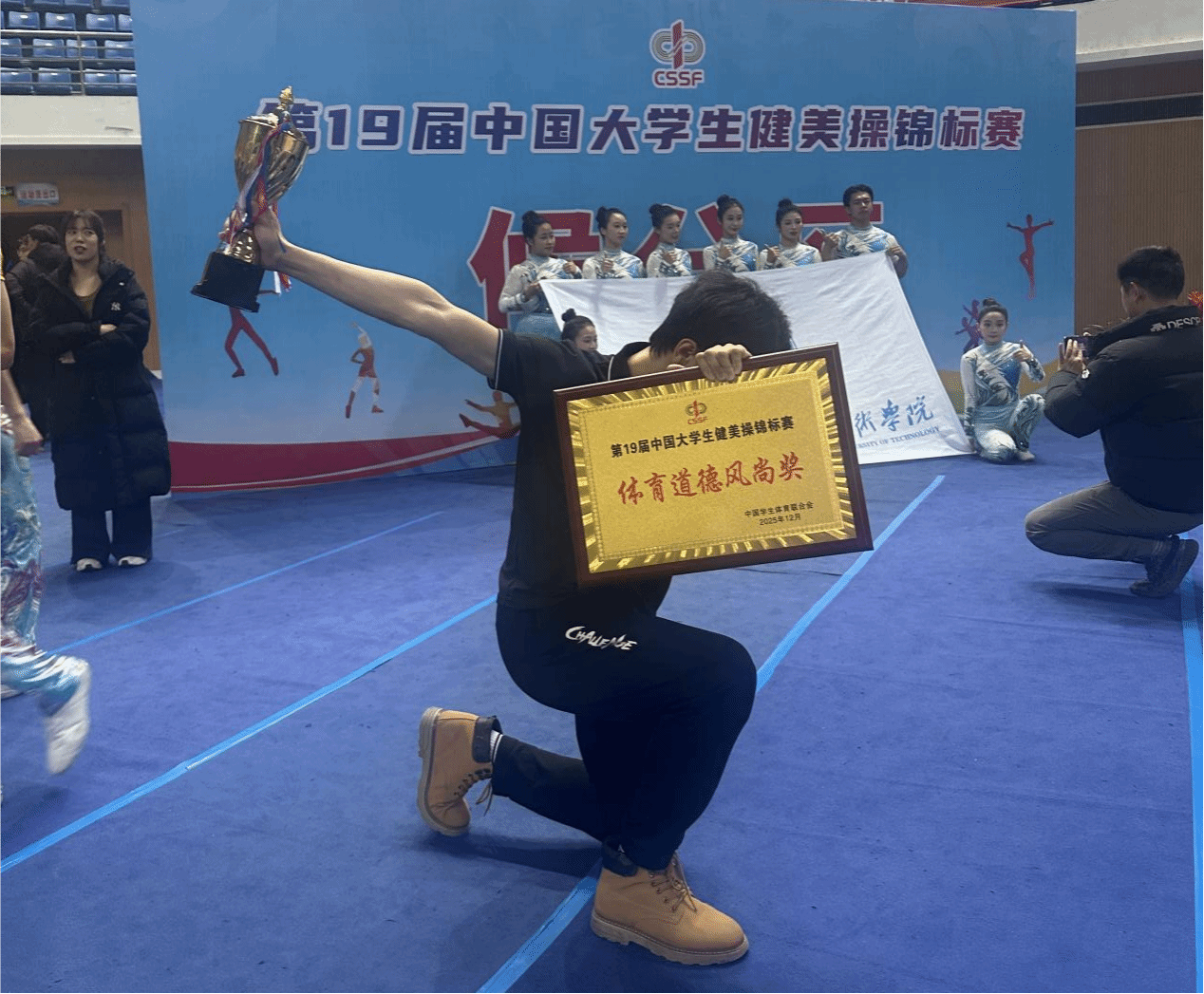 让我印象尤其深刻的,是备战健美操比赛的过程。健美操比很多人想象中更加高强度:快速的步伐切换不断消耗着体力,肺部的炸裂感让每一次呼吸都带着灼热的痛感。从队形走位到肢体控制,从节奏卡点到整体表现力,都需要大量时间去打磨。训练到后期,常常是身体已经很疲惫了,但还得一遍遍抠细节、练配合、调状态。那种累是痛苦的,但当我和队友一起咬牙撑过来,一起站上赛场时获得的成就感也是非常真实的。