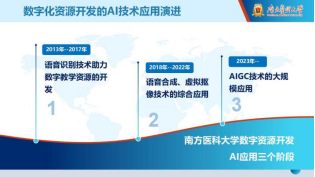 赵智涛在汇报中指出,面对医学教育数字化进程中教学资源需求爆发式增长的挑战,南方医科大学经历了从语音识别辅助、虚拟合成技术到AIGC全面赋能的“三阶段”演进路径。他强调,AIGC技术不仅极大提升了资源制作效率,更推动了教学资源创作从“工具替代”迈向“流程与范式重构”。