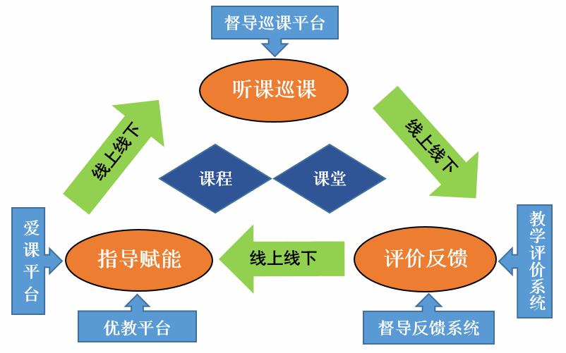 “双线驱动”指依托自主建设的“智慧教学督导平台”(含巡课、评价、反馈等子系统)与线下多元化督导活动相结合,实现信息技术与督导业务的深度融合,为督导工作提供数据驱动和流程再造的支撑。