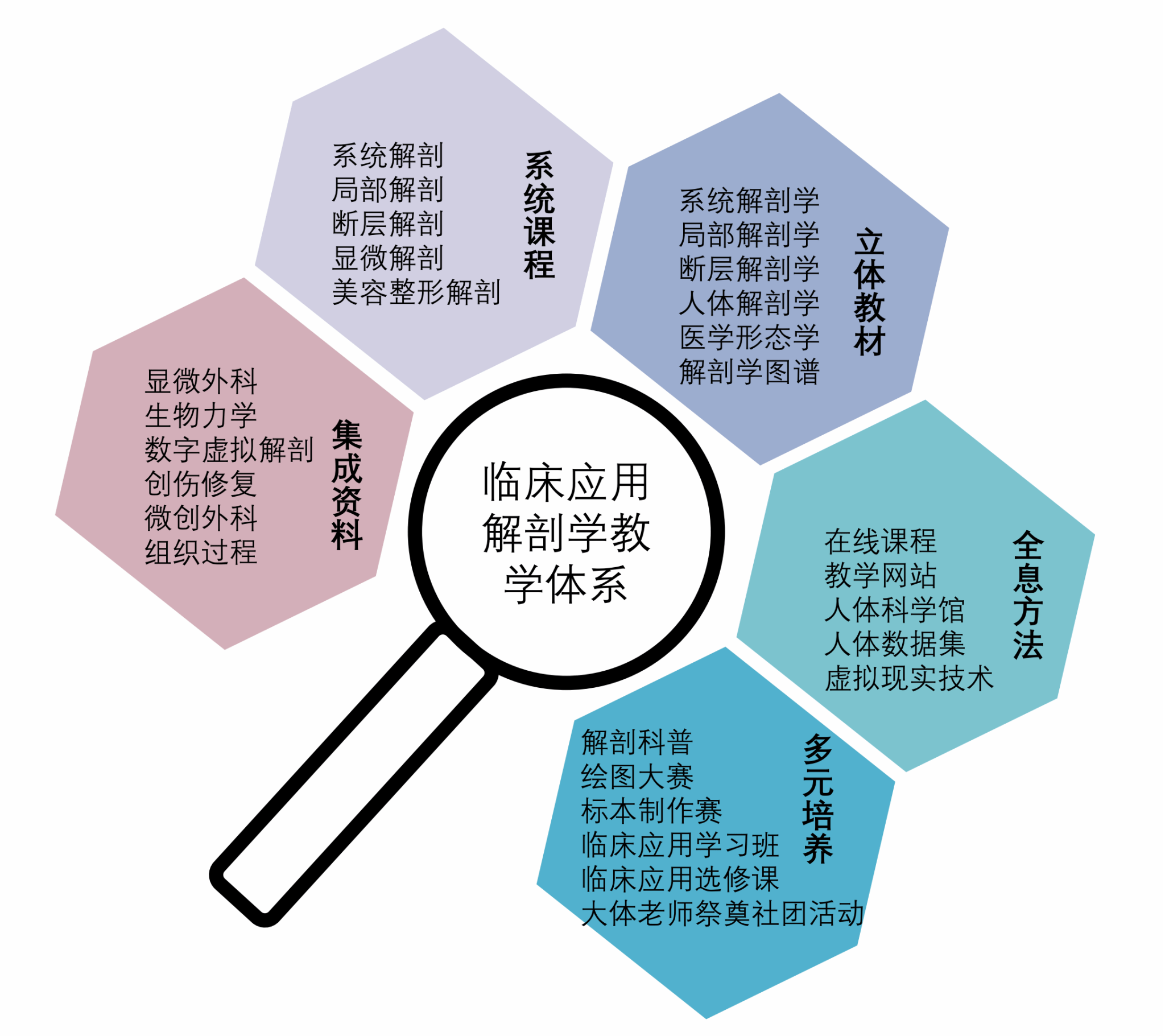 围绕学科、课程、教材、方法、学习者等5大要素构建临床应用解剖学教学体系。
