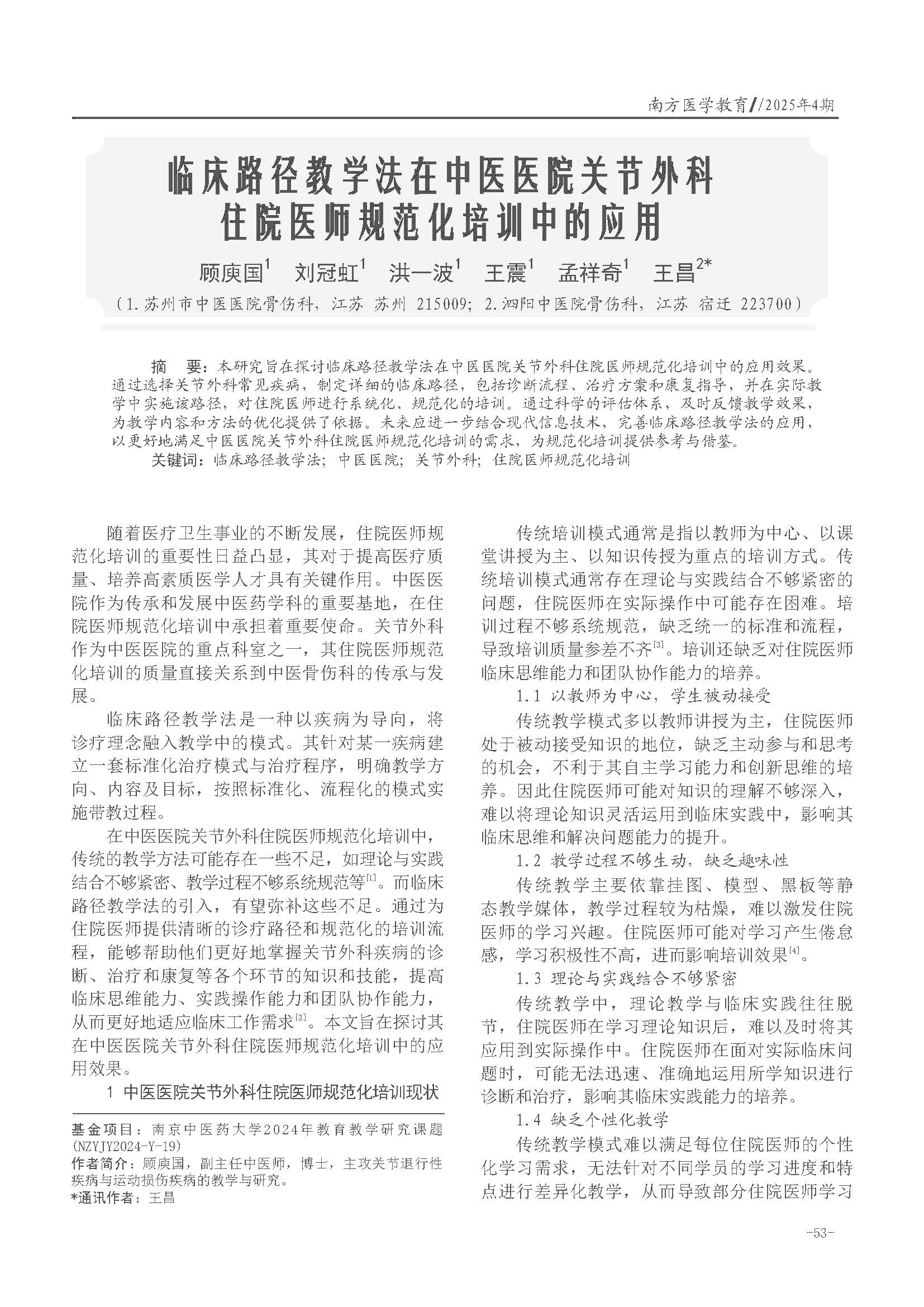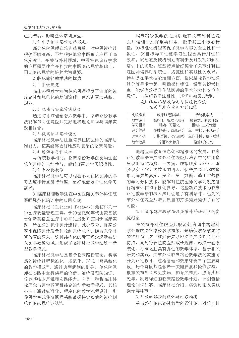 临床路径教学法在中医医院关节外科住院医师规范化培训中的应用