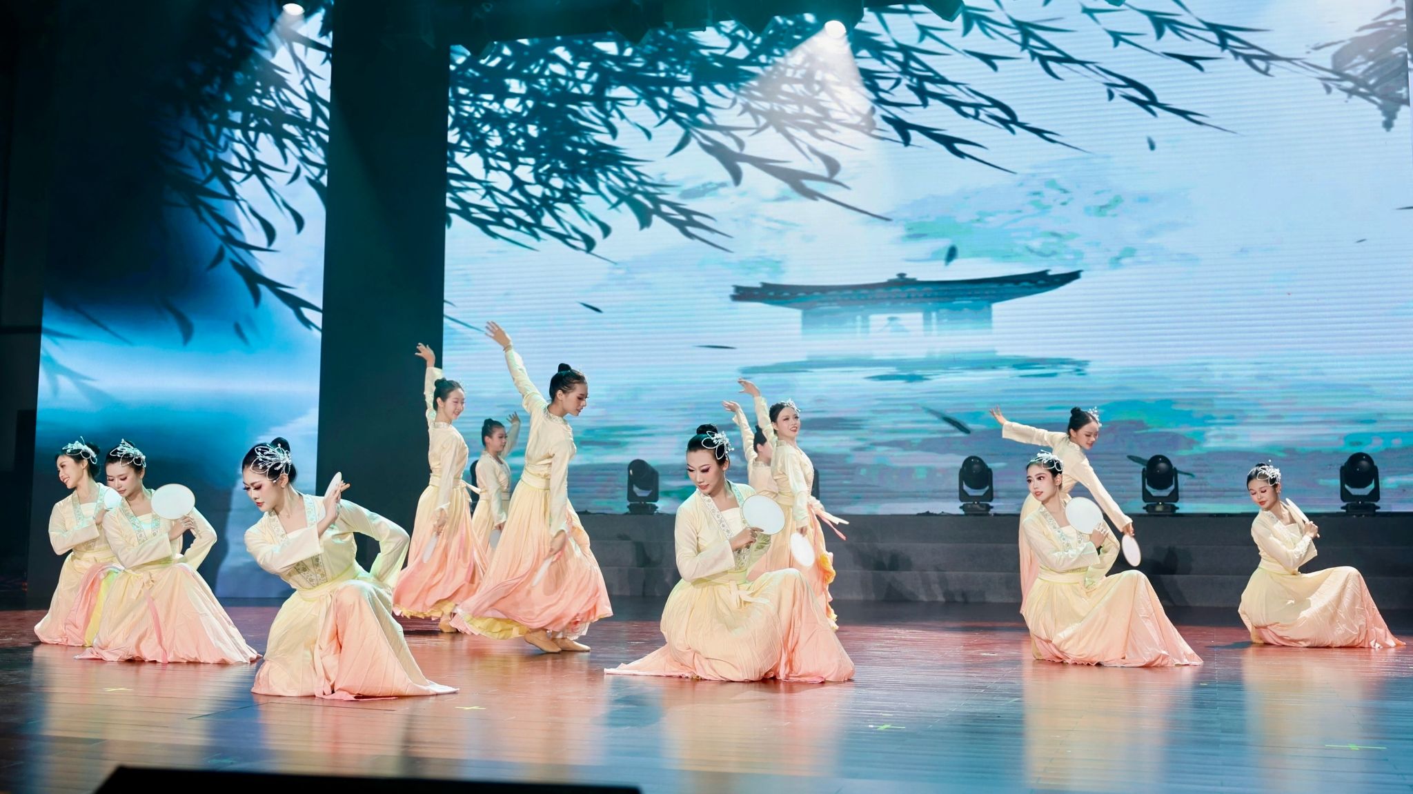 衣袂轻扬,笔走龙蛇绘云卷;步态翩跹,清风拂竹弄影斜。贺舒婷、张雅淇等师生携手演绎国风雅韵,以挺拔如竹、婉约似柳的舞姿,将诗词中的悠远意境铺展于舞台之上,古琴泛音破寂,箫声引月流光,邀观众共赴一场水墨云月之约。
