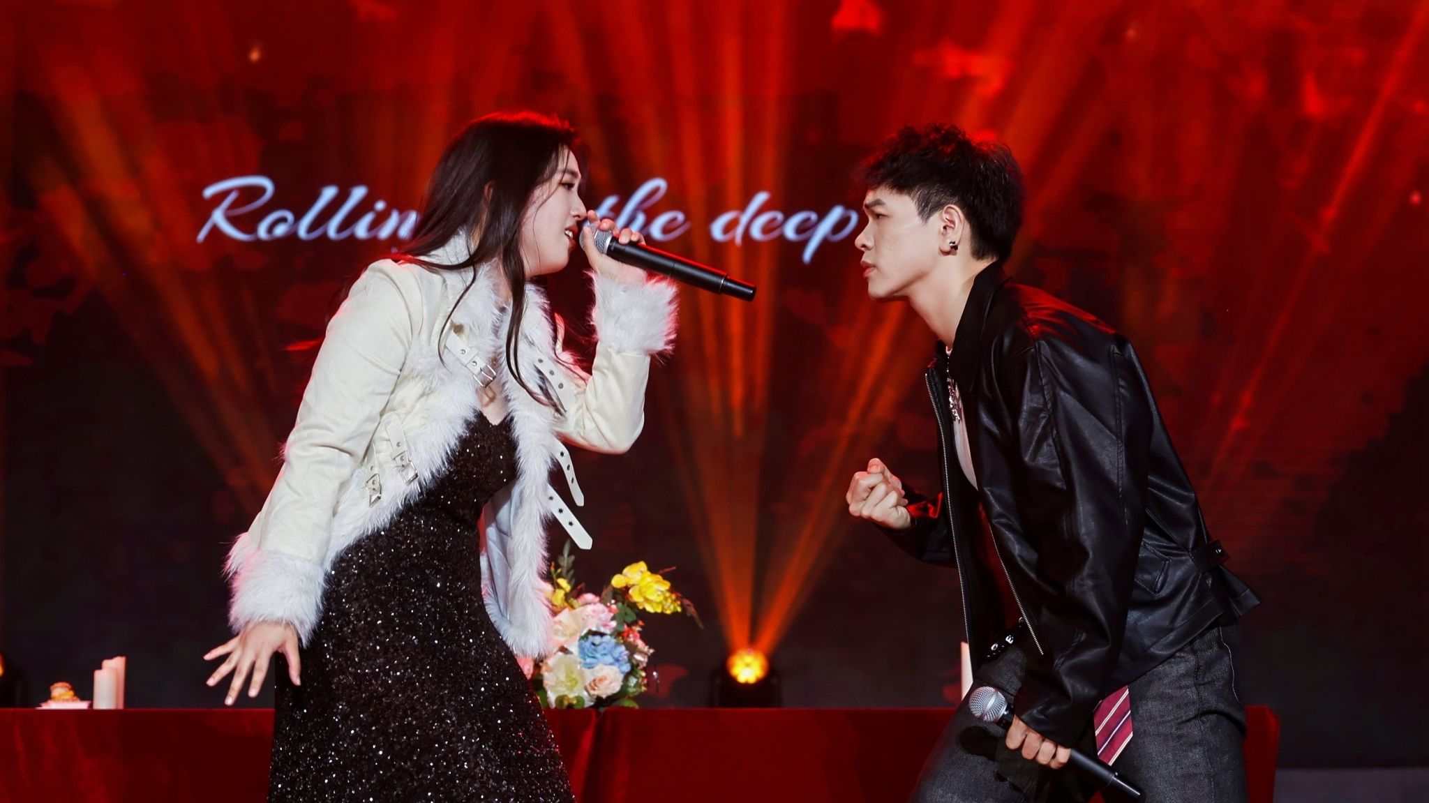 经典旋律碰撞爆发式舞台能量,引燃理性与情感的深度燃烧。教师陈艺洋与学生谭志豪双声交织,倾诉与呐喊共振;鼓点轰鸣,恰似心跳铿锵。让我们在歌声中见证——真理的火焰,于无数次深潜后划破黑暗;无畏的勇气,携冲破深潭的力量,直面前路未知!