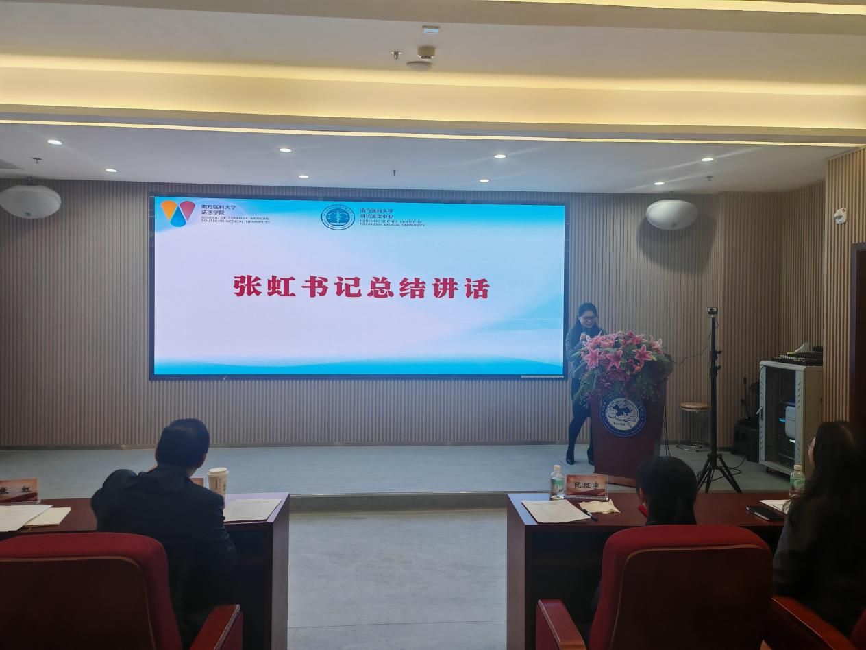 最后,学院党委书记张虹作总结讲话,充分肯定学院在2025年所付出的努力和取得的成绩,并特别强调,成绩离不开各党支部战斗堡垒作用的有效发挥和广大党员的实干担当。她指出,面对高等教育高质量发展的新要求和法医学事业发展的新机遇,全院上下必须保持清醒头脑,增强“不进则退、慢进亦退”的紧迫感。2026年要始终坚持“政治立院”根本方向,持续加强党的政治建设,把牢社会主义办学方向;要深入推进党建与业务深度融合,以高质量党建引领人才培养、科学研究和社会服务提质增效;要强化责任担当,凝聚发展合力,锚定“世界一流”奋斗目标,奋力书写新时代法医学高质量发展新篇章。