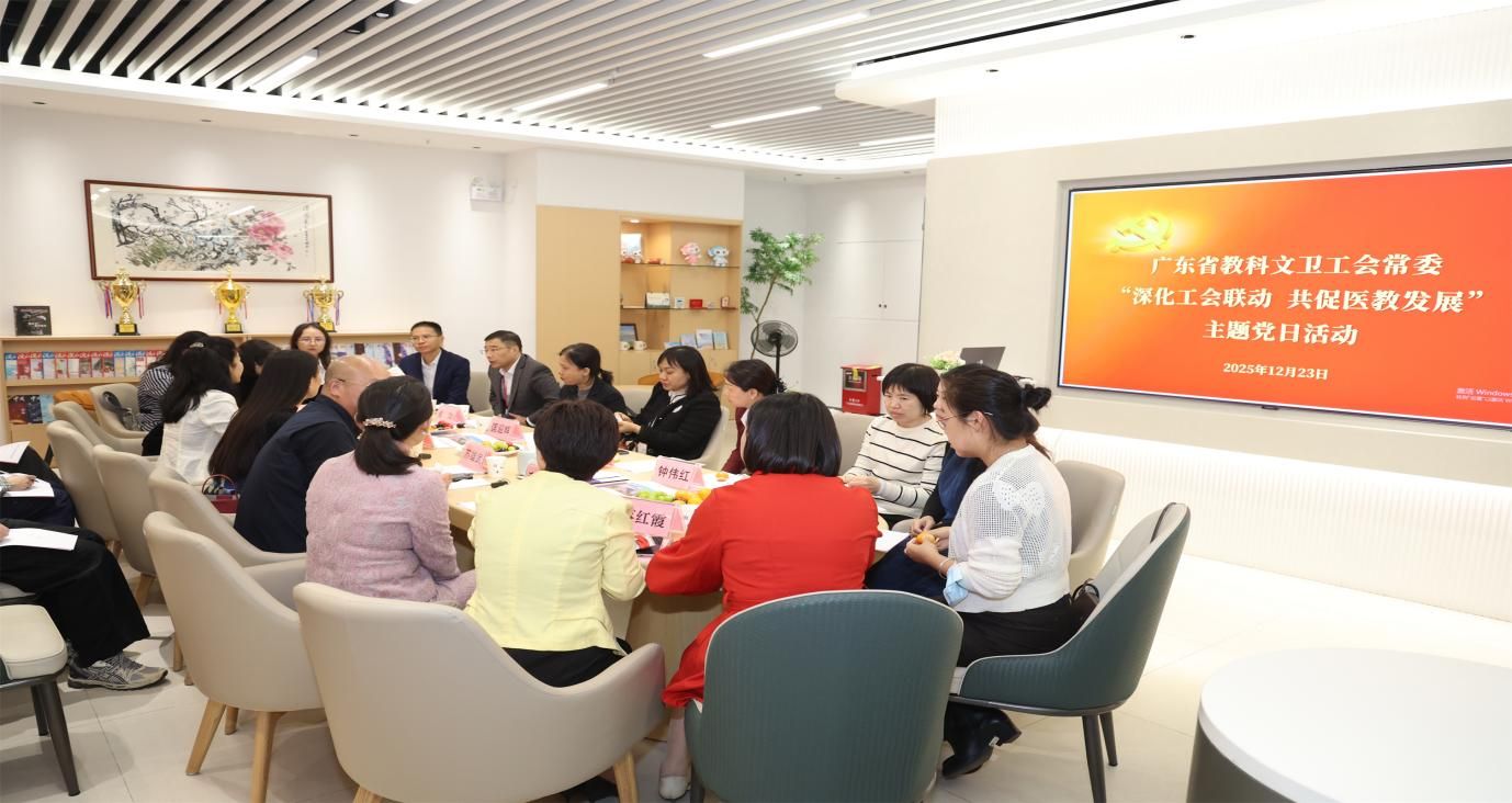 12月23日下午,广东省教科文卫工会主席谢岩梅一行赴我校顺德校区和第八附属医院开展“深化工会联动 共促医教发展”主题党日活动,并就职工之家与女职工创新工作室建设情况开展专题调研。中山大学、华南理工大学、暨南大学、华南农业大学、广州中医药大学、华南师范大学等常委单位工会主席参加调研。