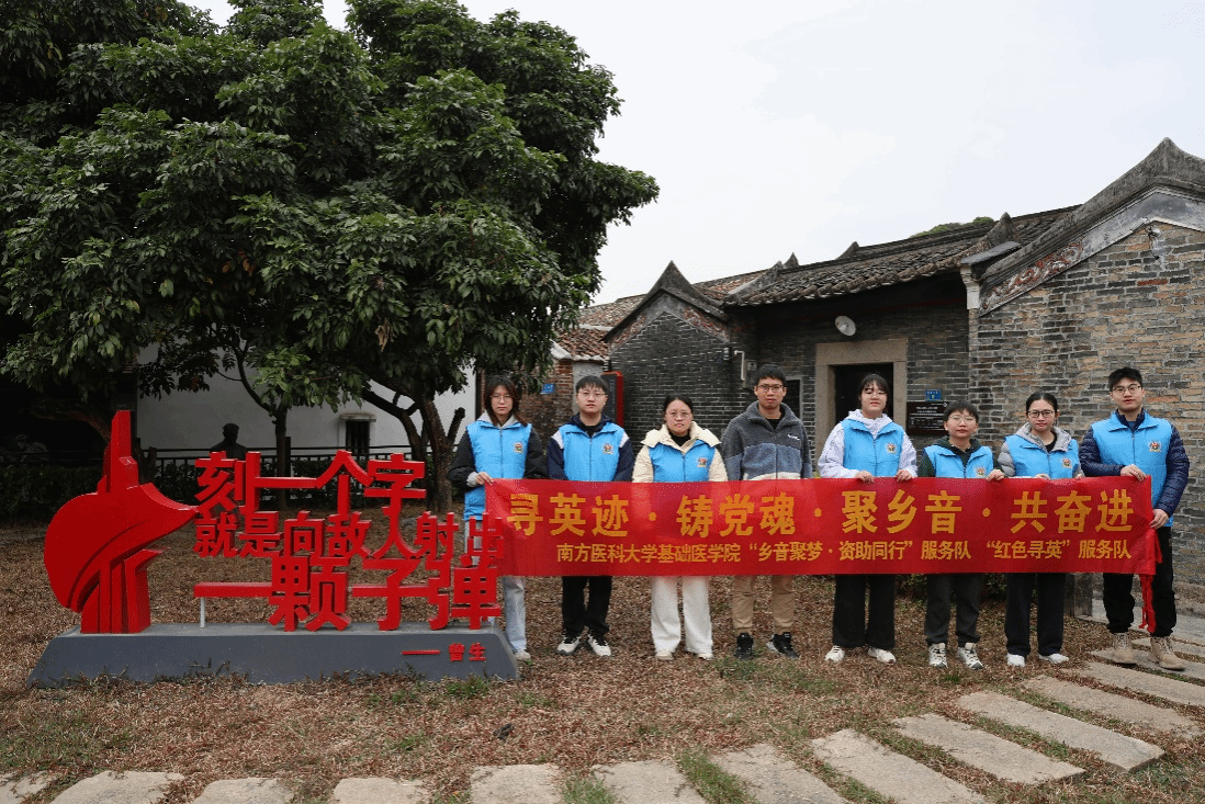 为深入学习贯彻红色文化精神,厚植青年学子家国情怀,1月26日,在指导老师谢胜蓝带领下,南方医科大学基础医学院“乡音聚梦·资助同行”与“红色寻英”服务队走进东莞市大朗镇,开展了一场以“踏寻东纵遗迹,厚植青春信仰”为主题的红色教育实践活动。队员们循着历史的脉络,先后探访巷头村史馆、松木山村革命烈士纪念碑、大岭山抗日根据地旧址及广东东江纵队纪念馆,在沉浸式学习中感悟革命先辈的奋斗精神。服务队立志将足迹遍布岭南红色热土,让红色基因在一届届医学生心中生根发芽。