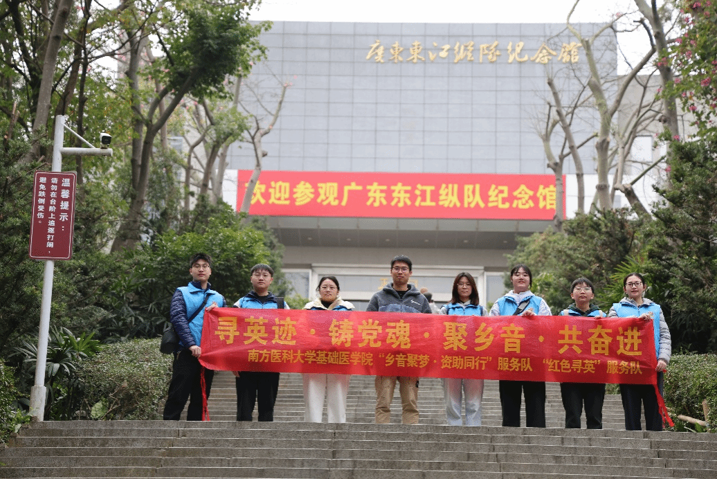 此次红色教育实践活动,是南方医科大学基础医学院“乡音聚梦·资助同行”与“红色寻英”服务队深化“红色育人”路径的关键一环。从巷头村史馆的岁月沉淀,到松木山纪念碑的静穆仰望;从大岭山根据地的烽火追忆,到东纵纪念馆的历史对话——队员们在一程程“行走的课堂”中,触摸到革命先辈以生命熔铸的家国史诗,更读懂了何谓信仰、何谓担当。作为医科院校的学子,此行不仅是一次精神的溯源,更是一次使命的唤醒。队员们深刻认识到,红色基因与医者仁心血脉相通:前者是为民族奋起的坚守,后者是为生命护航的誓言。大家纷纷表示,要把这份浸润热血的历史感悟,转化为精研医学、锤炼仁心的内在动力,让“博学笃行,尚德济世”的校训在红色底蕴中熠熠发光。