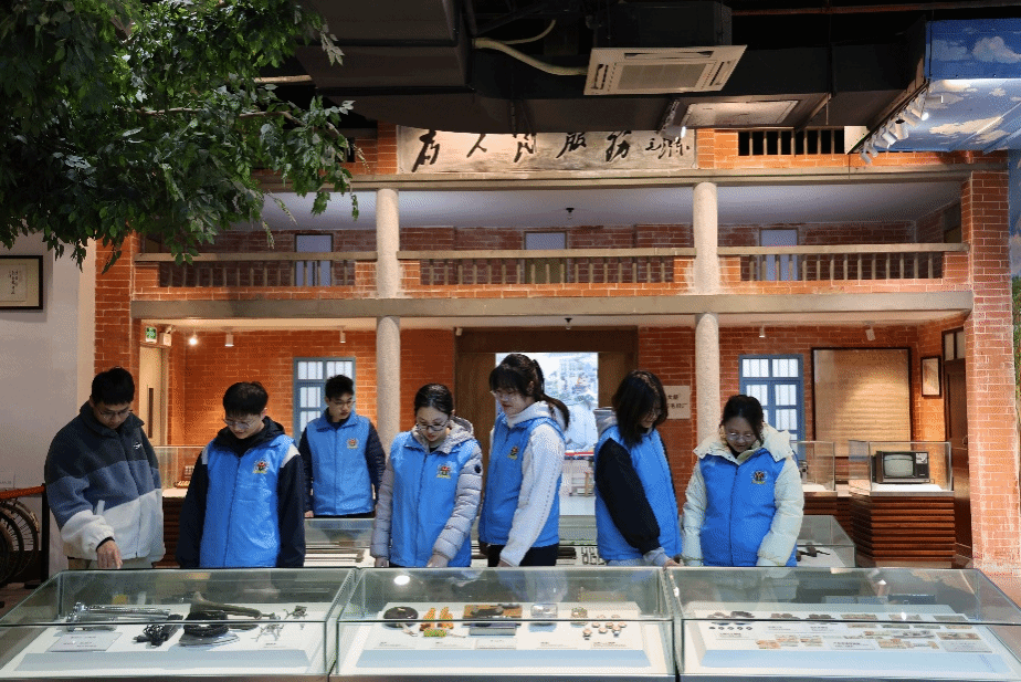 青石板路蜿蜒向前,古旧门楣镌刻着岁月痕迹,服务队队员们走进巷头村史馆,开启了一场穿越时光的寻根之旅。馆内陈列的400余件村民生产生活旧物、100余幅珍贵老照片,搭配声光电技术与雕塑、油画艺术作品,生动勾勒出巷头村从古代到现代的发展变迁脉络。大家不时低头记录,或用手机拍下珍贵史料,在触摸历史细节中,深刻体会到平凡岁月里蕴藏的奋斗力量。从农耕文明的质朴到现代社区的繁荣,队员们在新旧对比中读懂了时代发展的来之不易。