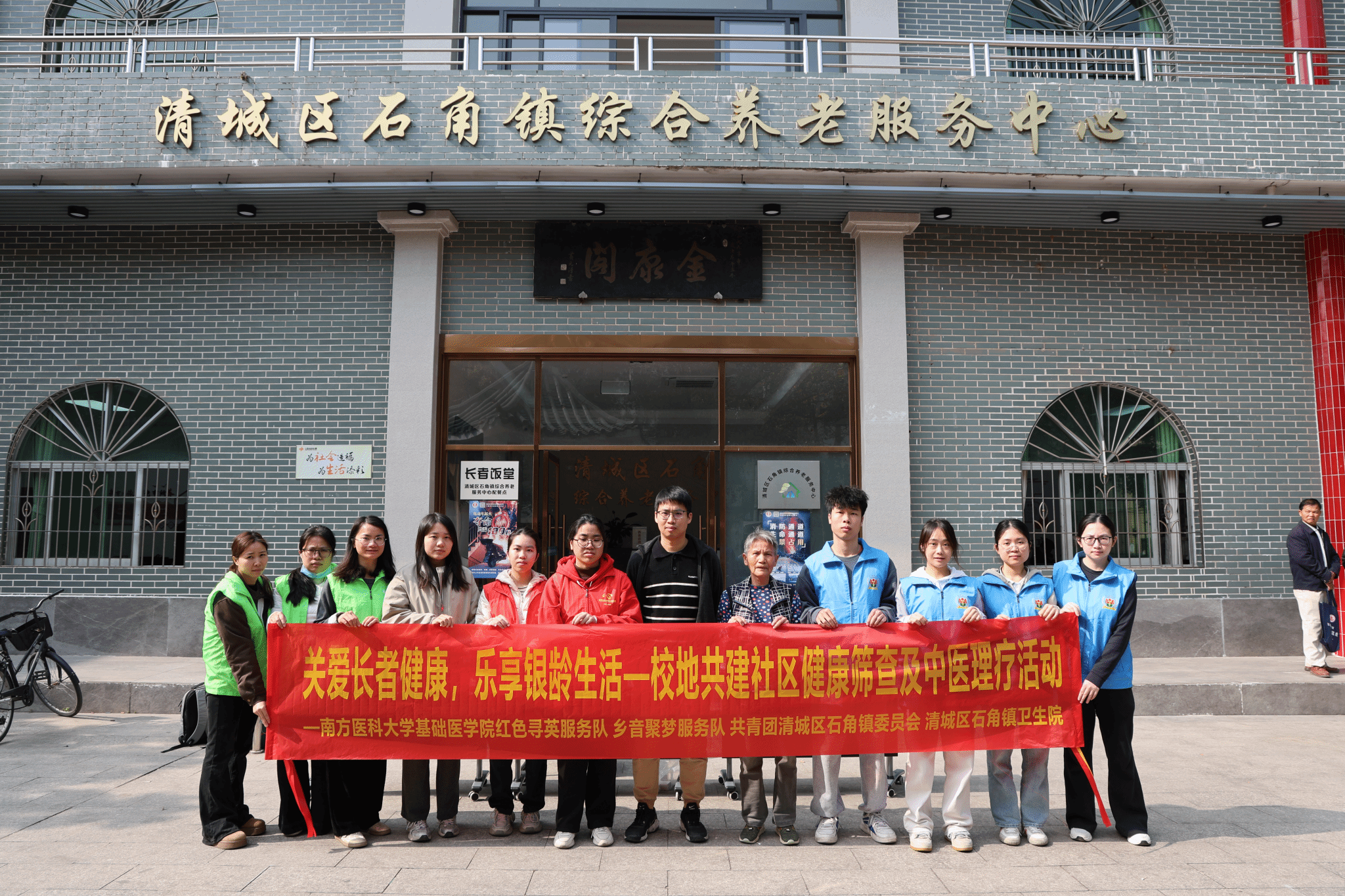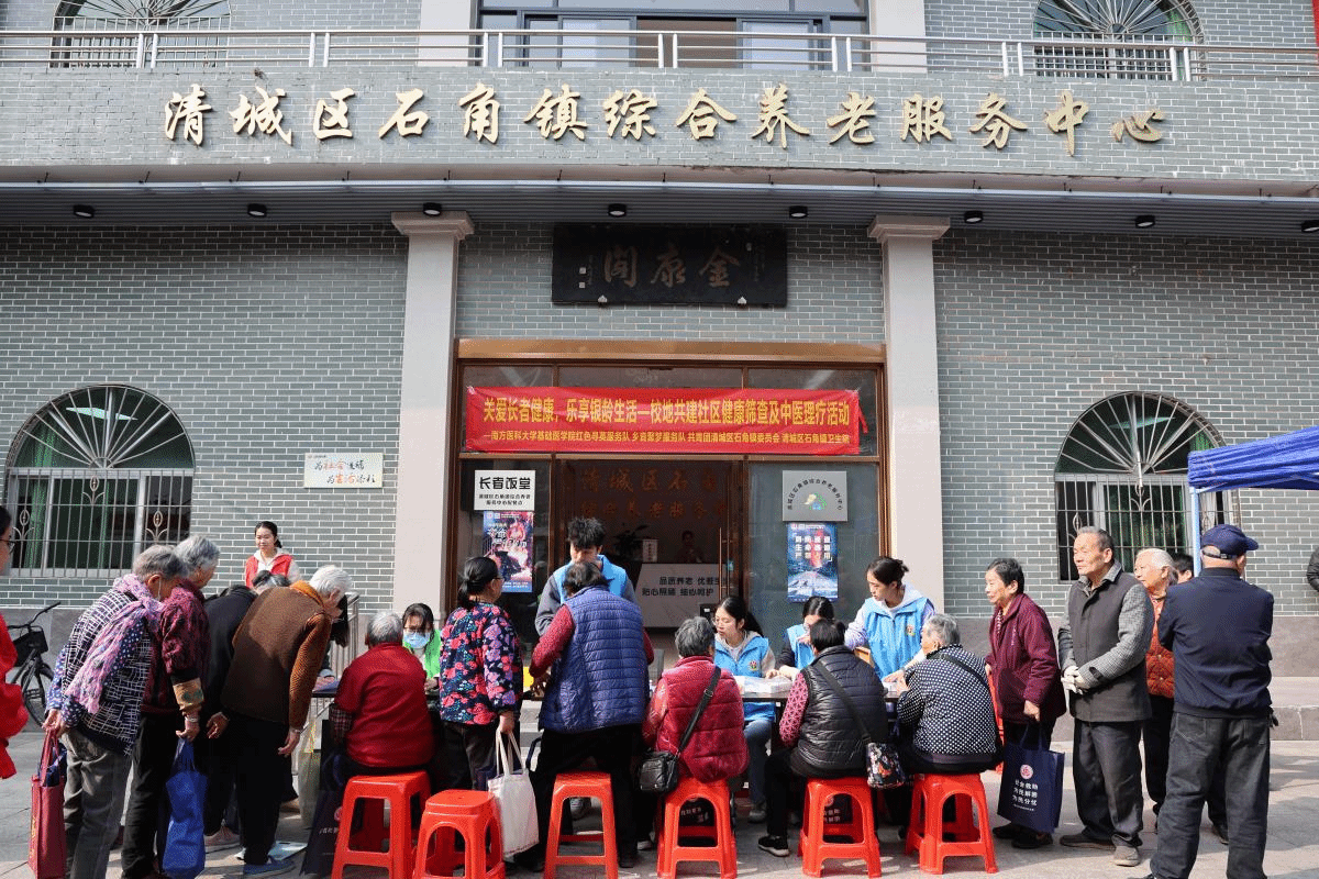 为扎实推进基层老人健康管理工作,完善老人健康档案建设,让健康关怀精准触达基层老年群体,1月28日,南方医科大学基础医学院“红色寻英”服务队与“乡音聚梦”服务队携手清城区石角镇团委、清城区石角镇卫生院,共同走进石角镇综合养老服务中心,开展“关爱长者健康,乐享银龄生活”主题健康服务活动。