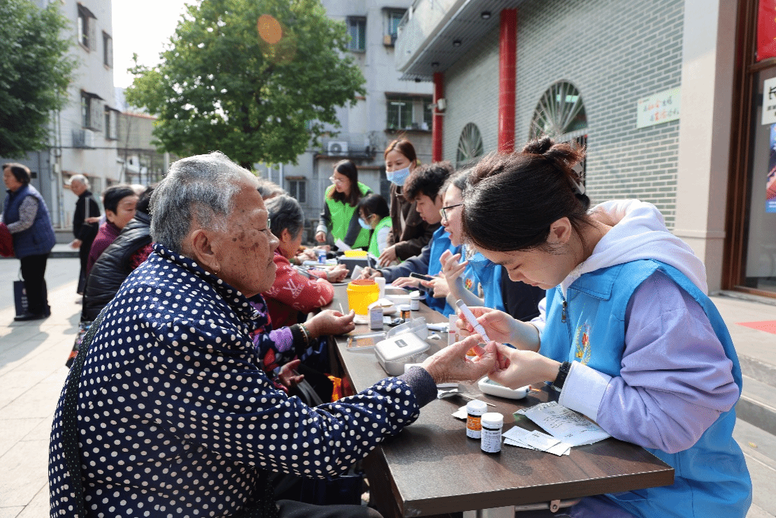 冬日的暖阳洒满石角镇综合养老服务中心的门前广场,专业与温情交融。队员们身着统一志愿服,携带血糖仪、尿酸仪等专业设备,与石角镇卫生院医护人员默契配合、快速分工,将现场布置为临时健康监测与理疗阵地,协助开展老人健康数据采集、完善健康档案,筑牢基层老人“家门口的健康监测防线”,彰显校地协同惠民初心与医科青年的责任担当。
