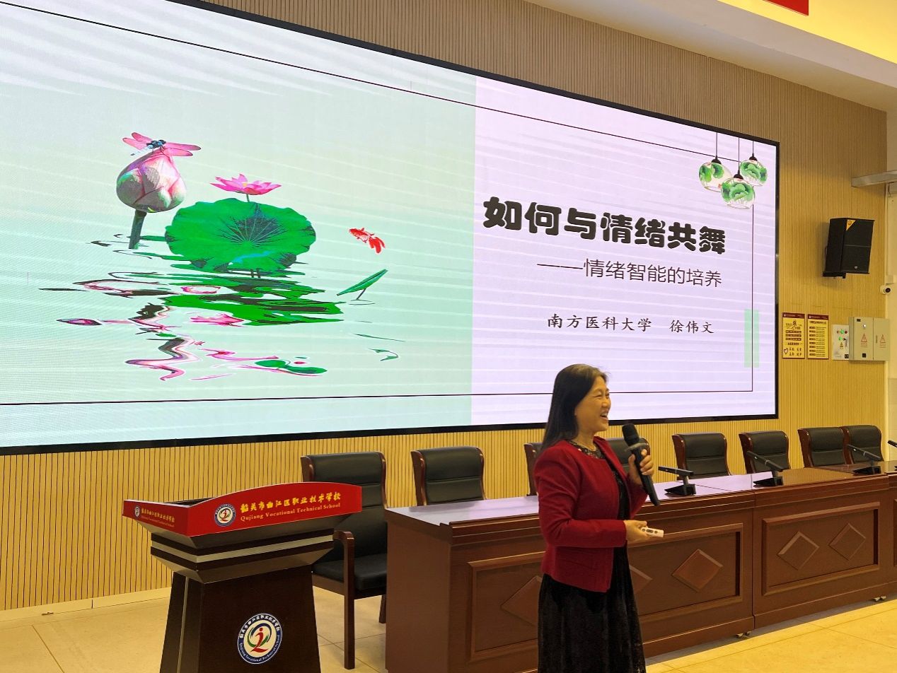 我院教师党员徐伟文研究员为同学们带来了题为《如何与情绪共舞——情绪智能的培养》的专题讲座。讲座聚焦青少年常见的情绪困扰,通过生动的案例、有趣的互动和实用的技巧讲解,深入浅出地阐述了情绪管理的重要性与提升情绪智能的方法技巧。徐老师亲切的讲授风格与贴近学生实际的内容引发了强烈共鸣,现场气氛活跃,反响热烈。讲座结束后,学院一行代表学院向韶关市曲江区职业技术学校捐赠了一批文化体育用品,这份暖心的礼物受到了师生们的热烈欢迎。学校有关领导表示,未来将继续加强交流合作,探索更多形式的校际互助,共同助力职业教育高质量发展与学生全面成长。