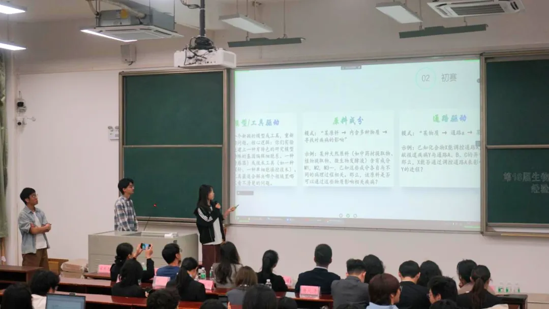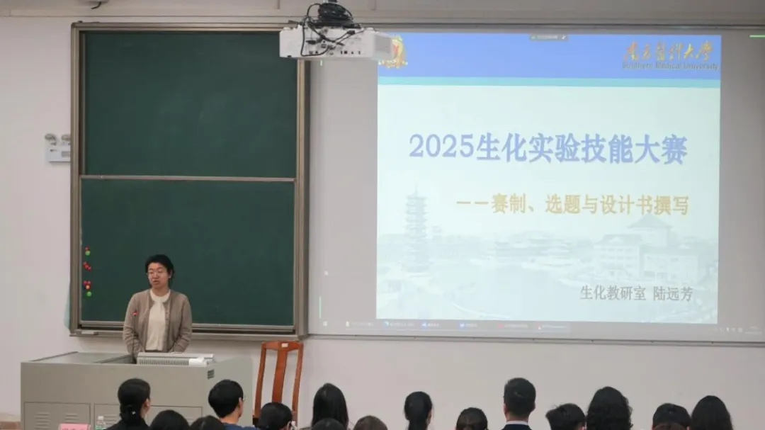会议开始,来自生化教研室的陆远芳老师就大赛的赛制、选题以及设计书的撰写三方面对今年生化实验技能大赛展开了详细地说明与解释。陆老师强调,选题应具备创新性、实用性与可行性三大特征。她鼓励选手们将生活中的现象科学化、科学内容趣味化,自发地观察生活现象,寻找其中的生化机制,并查阅相关文献资料来挖掘创新点。同时,陆老师还列出历年来的获奖作品,以此来分析选题趋势,为同学们提供了参考。最后,她推荐了许多查阅文献的网站,如我校图书馆官网、PubMed、web of science等。与此同时,陆老师建议同学们翻阅近十年的论文,不建议阅读过早或过新的文献。技术的更迭日新月异,引流潮流的文献可能难以直接应用于设计简单可行的项目,而那些已被广泛接受和验证的论文能更好地帮助参赛选手完成这次大赛。