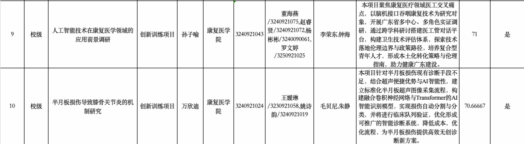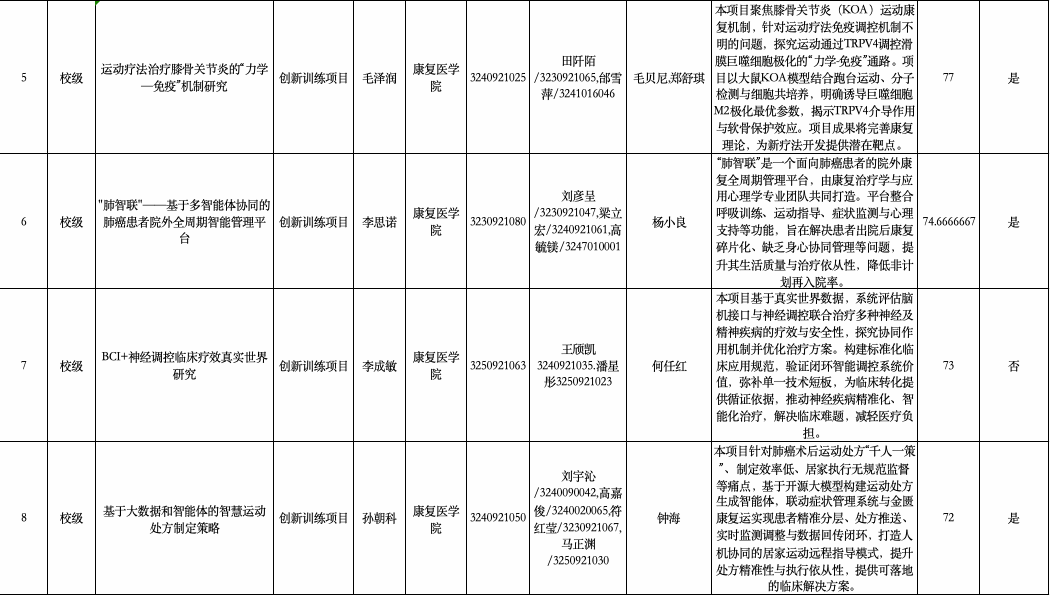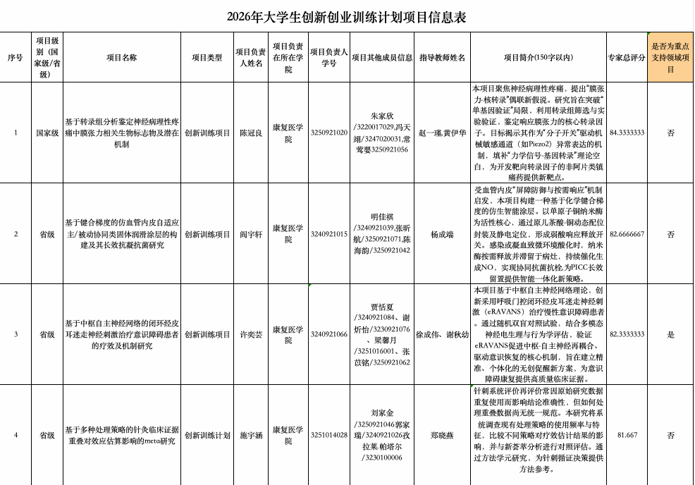 附件:康复医学院2026年度大学生创新创业训练计划项目拟推荐项目信息表