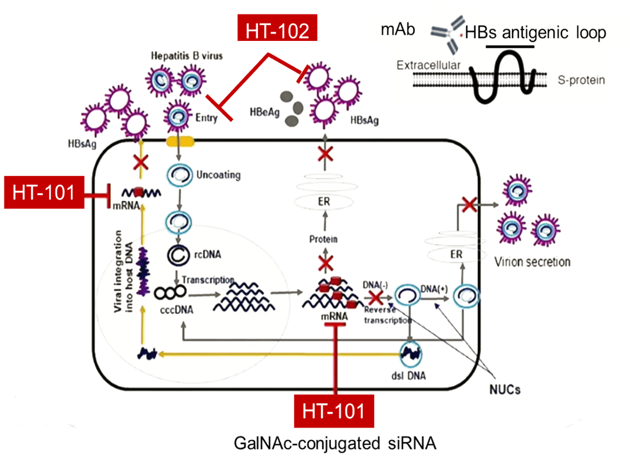 HT-101:一种靶向肝细胞的GalNAc偶联小干扰RNA(siRNA),能精准沉默HBV转录本,从源头阻断HBsAg产生。