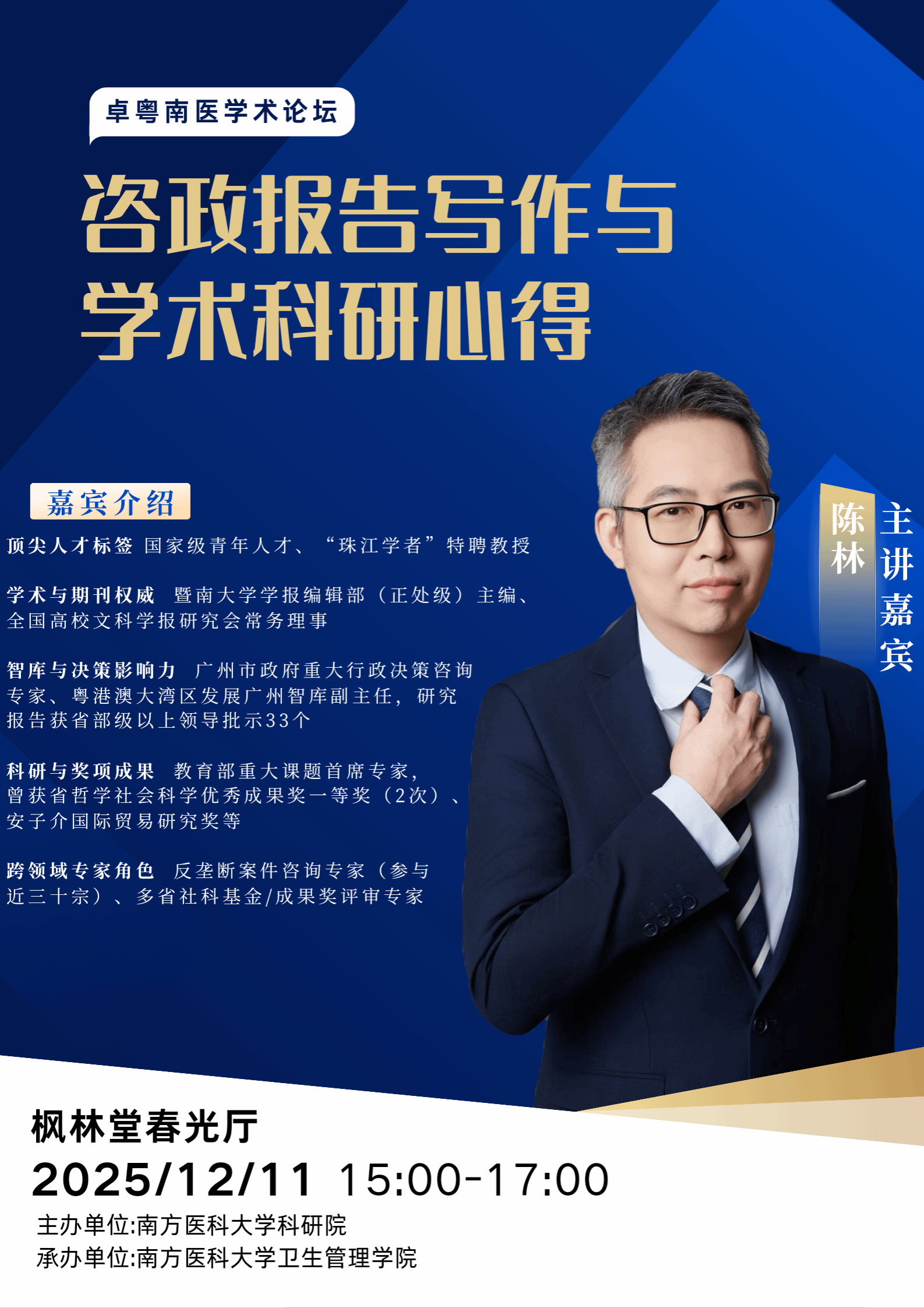 【卓粤南医学术论坛】咨政报告写作与学术科研心得