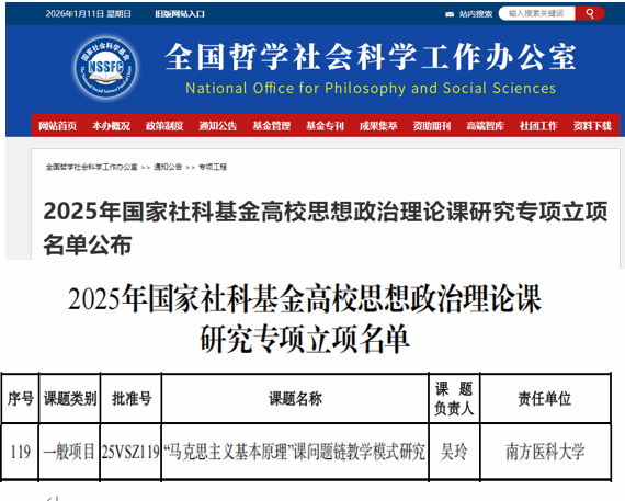 近日,全国哲学社会科学工作办公室公布2025年度国家社科基金高校思想政治理论课研究专项立项名单,全国仅185个项目获准立项。我校马克思主义学院青年教师吴玲负责的项目“‘马克思主义基本原理’课问题链教学模式研究”入选。