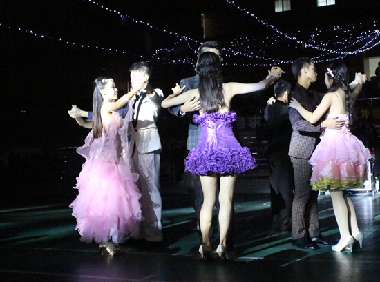 欢快舞会,与你牵手。精彩节目表演过后,圣诞舞会在欢快的旋律当中正式开始。美丽优雅的Party Queen和帅气迷人的Party King携手起舞,优美动人的身影在璀璨的“星空”下跳动。领舞过后,老师和同学们也纷纷牵起手加入其中,曼妙的舞姿、欢乐的笑声见证了这一个令人难忘的圣诞夜。