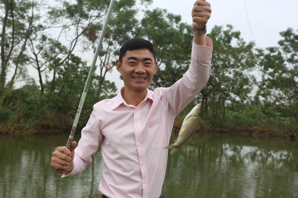 9点整,随着裁判一声令下,钓鱼比赛正式开始。大家摆好阵势,纷纷抛竿,聚精会神地观望着水里的动静。经过前几次活动的积累,多数人已深谙钓鱼需心静的道理,少了以往的喧嚣,全身心地投入。没过多久,陆续有鱼上钩,旁边同事非常热心地放下手中鱼竿,帮忙下鱼,完美诠释了“友谊第一,比赛第二”的精神。
