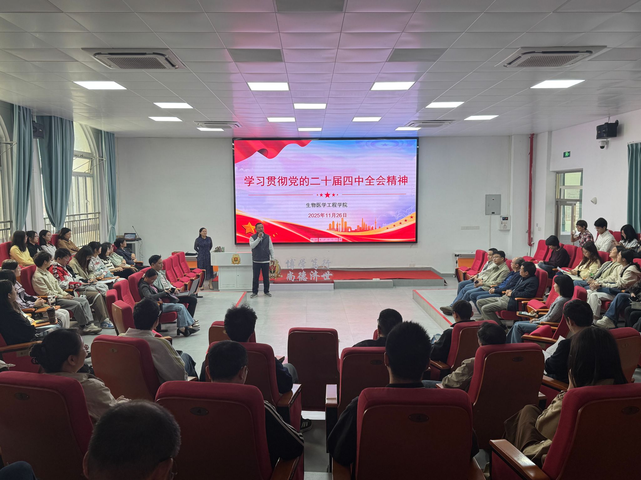 为深入学习贯彻党的二十届四中全会精神,11月26日,学院邀请马克思主义学院曾汉君教授为学院党委委员、全体党支部书记及师生党员代表作题为“守立德树人初心、担健康中国使命”专题讲座,讲座由学院党委副书记龚剑主持。
