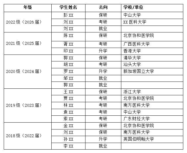 带教学生主要去向(近5年):