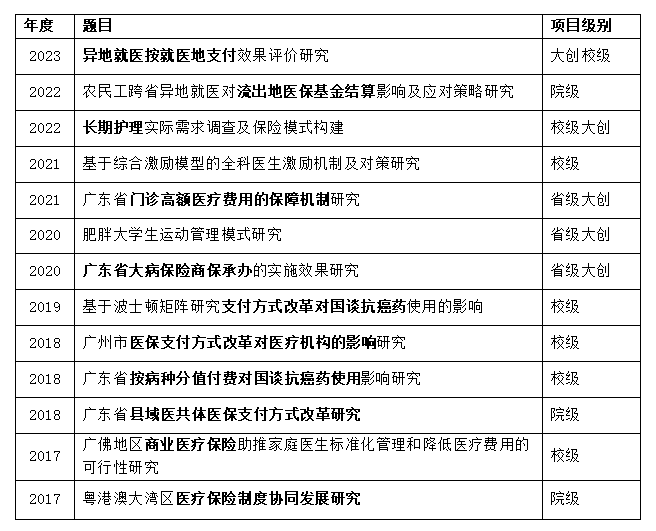 3.主持“科学城医疗卫生服务体系综合保障能力提升-医保部分”,在研;