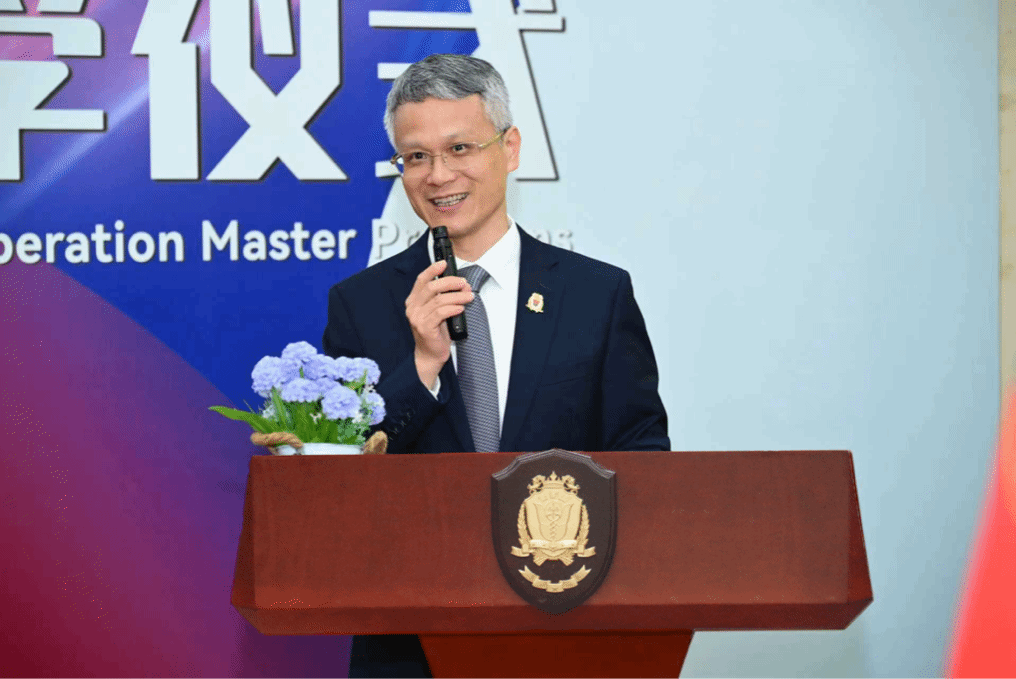 在2025级国际合作(中葡、中英)硕士项目开学仪式上,学校副校长许可慰强调,国际合作硕士项目聚焦于复合型国际化人才的培养。他鼓励同学们秉承 “博学笃行,尚德济世” 的校训,“脚踏实地追求卓越”“拥抱多元拓展视野”“不忘初心服务社会”。他希望同学们通过研究生阶段的学习,在医学道路上扬帆远航、追求卓越,为促进中国乃至全球健康与医学事业发展不懈努力。