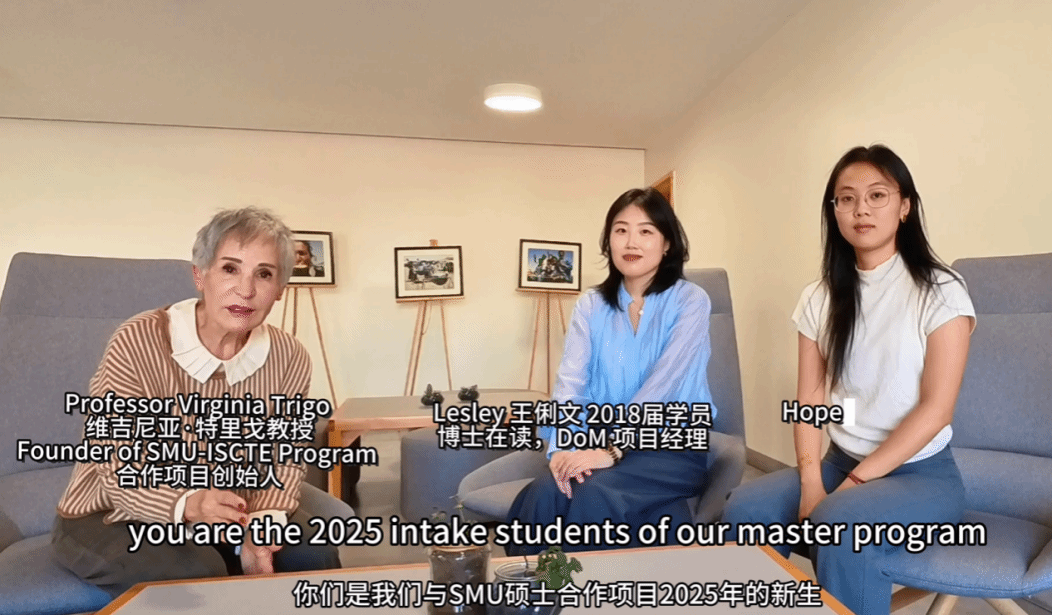 项目合作院校代表分别通过视频形式送来祝福和问候。葡萄牙里斯本大学学院国际事务副校长海伦娜·卡雷拉斯教授、合作项目创始人维吉尼亚·特里戈教授向全体新生致辞,并邀请两位已在该校国际关系办公室任职的项目学员代表,分享就读感受。他们鼓励同学们保持用于尝试的积极心态,在多元的学习环境中收获有价值的成长路径。