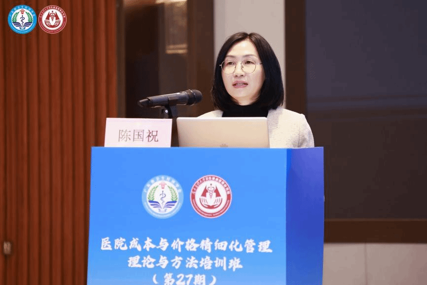 ▲医疗服务成本与价格专业委员会副主任委员、东莞市妇幼保健院总会计师陈国祝主题授课