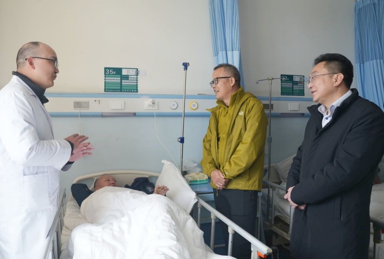 张玉润一行来到林芝市人民医院门诊部义诊活动现场,看望了来自我校9家附属医院的21名援藏医疗专家,了解和关心援藏队员们的工作和生活条件;前往林芝市巴宜区嘎拉村,向村卫生室捐赠了药品。在林芝市人民医院住院部骨科病区,调研组一行详细调研了学校第三附属医院“院包科”和“师带徒”等工作情况,并到病房看望“百例骨关节手术公益项目”术后患者和脊柱微创手术术后患者。张玉润指出,要强化林芝市人民医院与学校第三附属医院的骨病研究合作,进一步加强高原骨病研究,从预防入手,帮助提升林芝高原骨病防治水平。