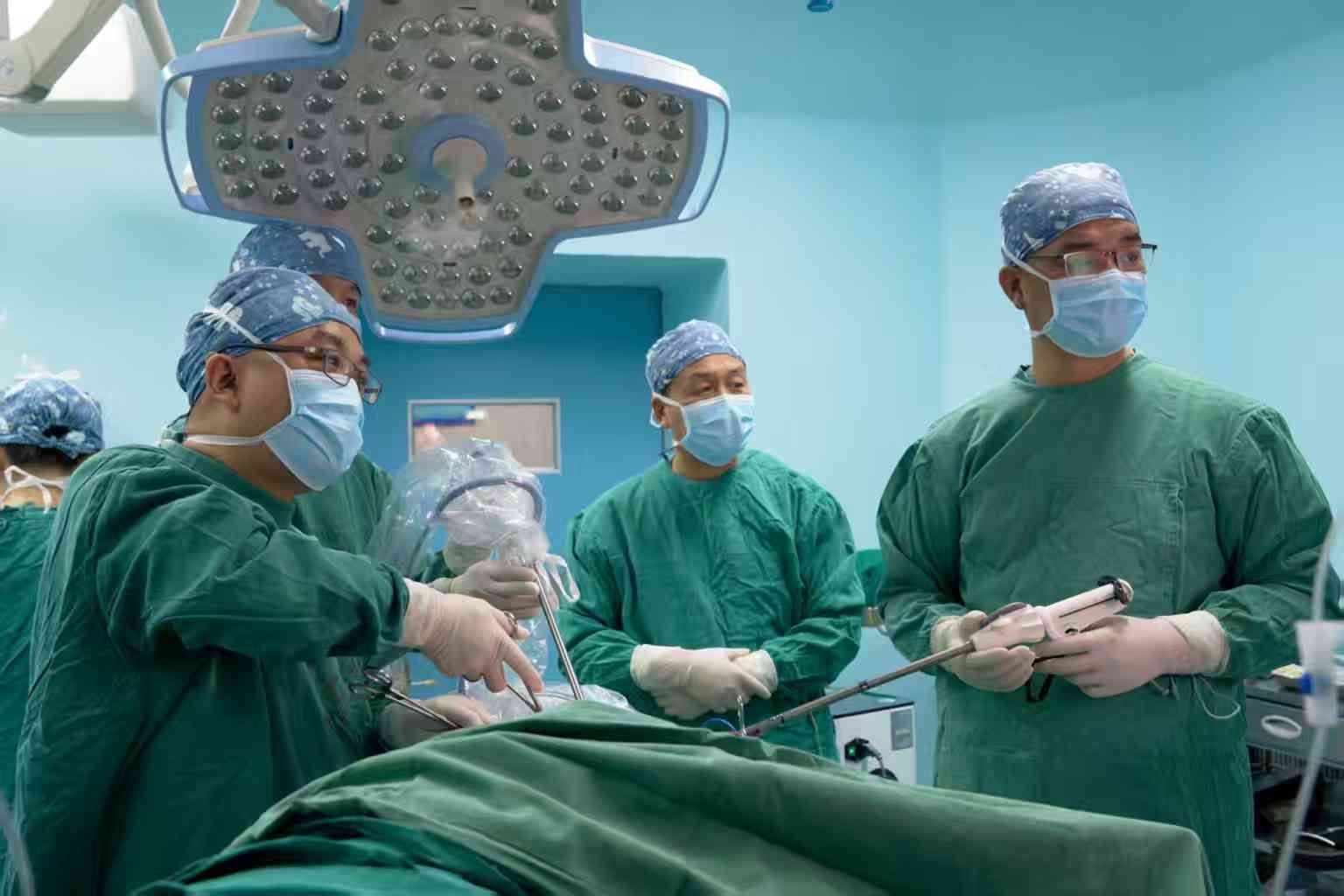南方医科大学第五附属医院驻曲江帮扶专家汤骥骜副主任医师、张金蛟副主任医师为患者实施手术中
