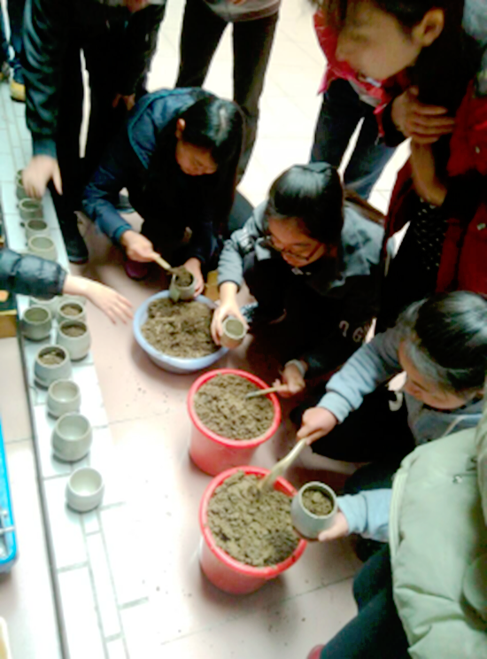 考虑到春季广东的天气多变,3月12日植树节的活动采取室内盆栽种植的形式。上午9点,学生们在春晖1栋天井等候分发种子,人头攒动,跃跃欲试,等待为一颗颗种子安置新家。大家分工明确,踊跃参加,有的铲土、有的填土、有的放置种子、有的浇水,互相帮助,很快热情高涨起来。虽然天气寒冷,但大家有序加入盆栽种植行列。
