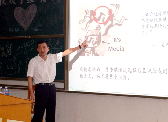 在开场的讲座中,昌家杰就网络信息的泛滥展开话题。他强调,面对纷繁复杂的网络信息,大学生不可随波逐流,要提升媒介素养,做媒介的主人。他指出,真实性、平衡性、公正性等是我们衡量传播信息是否可信的尺度。他列举了大量的新鲜事例,如魏则西事件、徐州右肾门事件等,分析了这些热点网络信息里呈现的种种不理性表现,号召同学们不要当键盘侠、网络喷子,不要盲目地做出判断和行动,要发挥媒介的正效应,规避负效应,提高媒介信息的使用能力,为个人的发展、社会的进步服务。