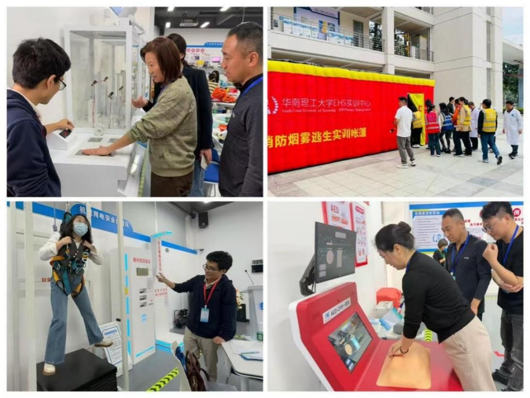 为打破传统“听得多、动手少”的痛点,本次培训特别设置了“沉浸式实操”环节。12月12日,全体学员前往华南理工大学EHS实训中心进行现场教学。