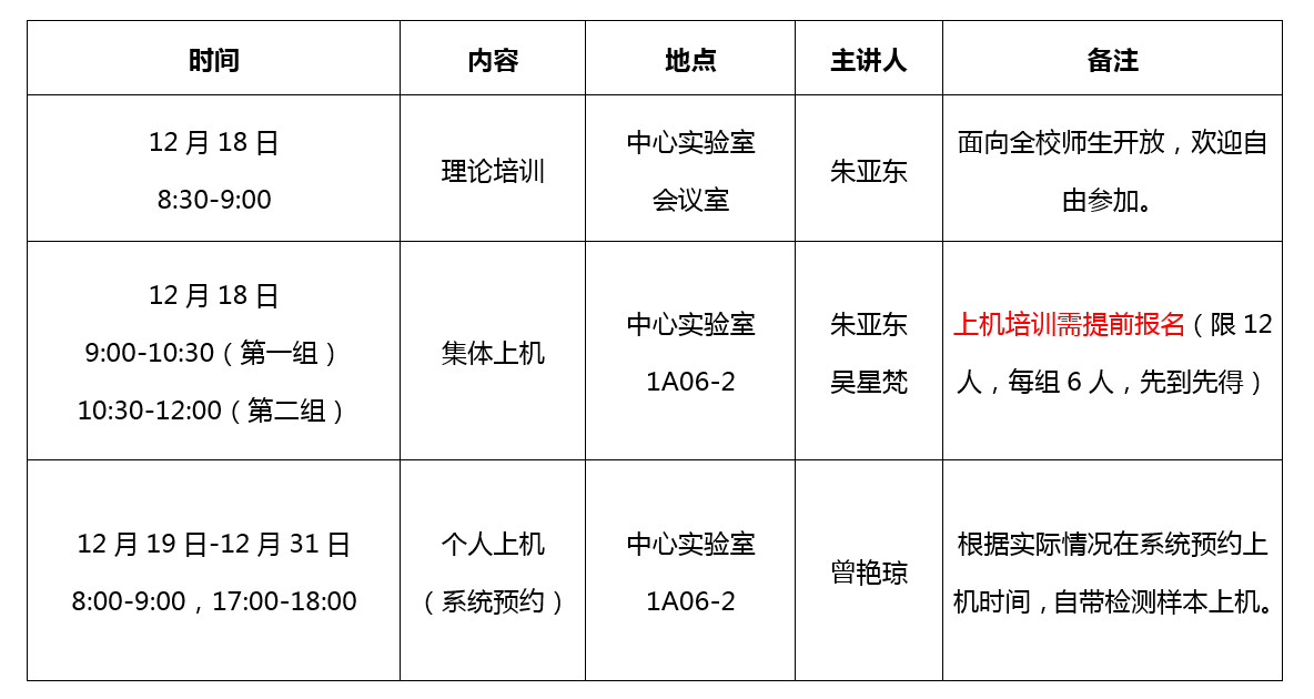 1、鉴于个人上机需自备检测样本,且培训每学期均有安排,建议近期无测试需求的师生可延后报名。