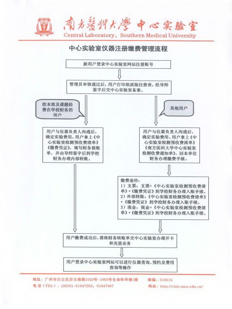 中心实验室仪器注册缴费管理流程