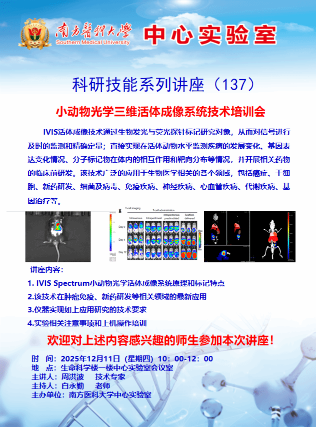 科研技能系列讲座(137)--小动物光学三维活体成像系统技术培训会