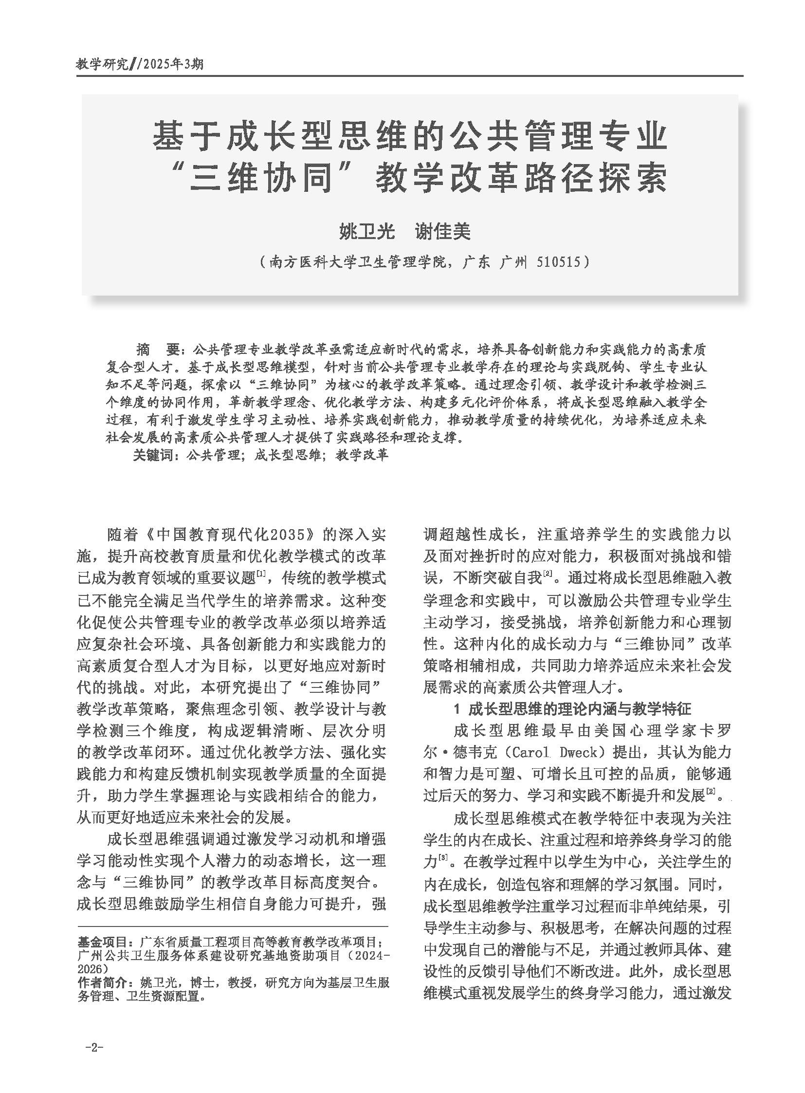 基于成长型思维的公共管理专业“三维协同”教学改革路径探索