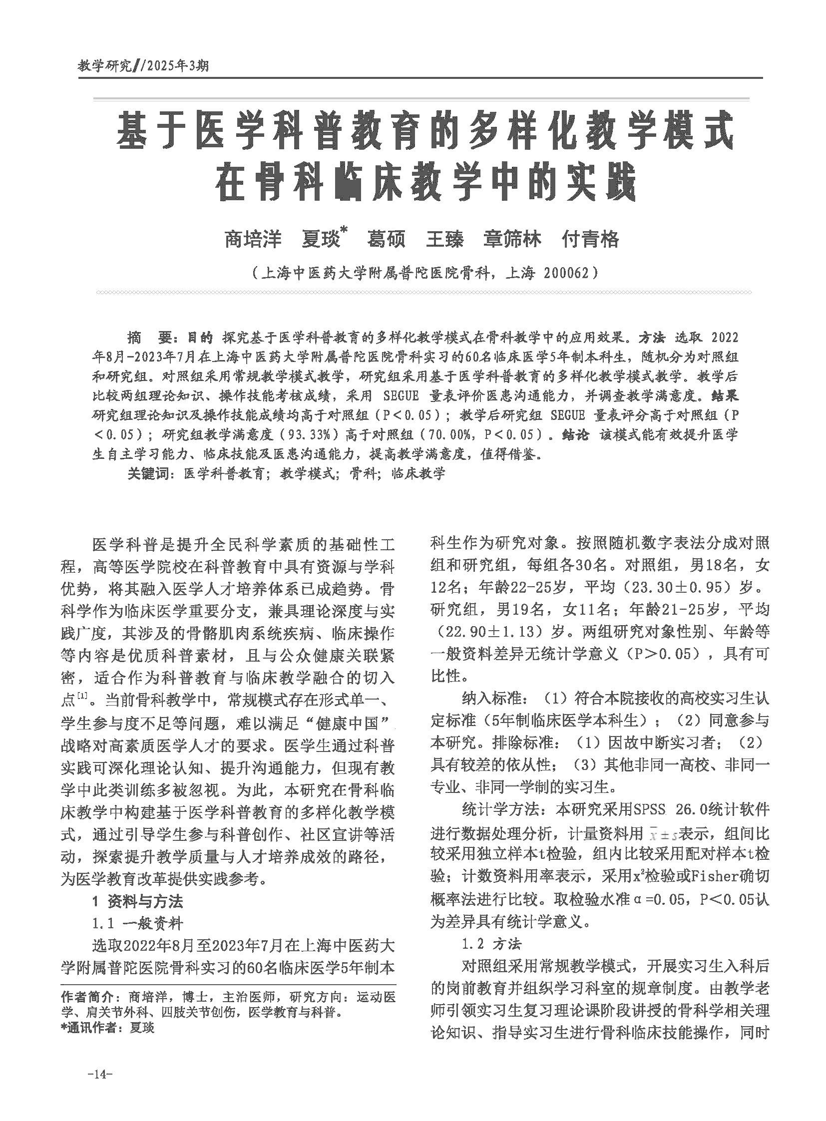 上一条:医院药学实习分层带教模式的构建与实践 下一条:虚拟仿真超声技术在下肢静脉曲张诊治全流程教学中...