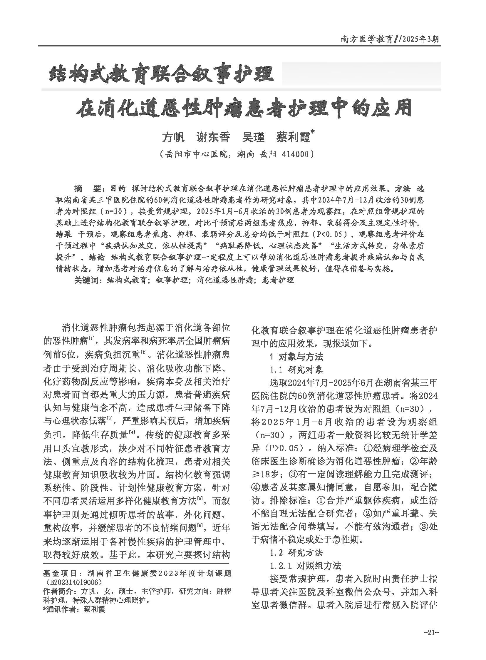 结构式教育联合叙事护理在消化道恶性肿瘤患者护理中的应用