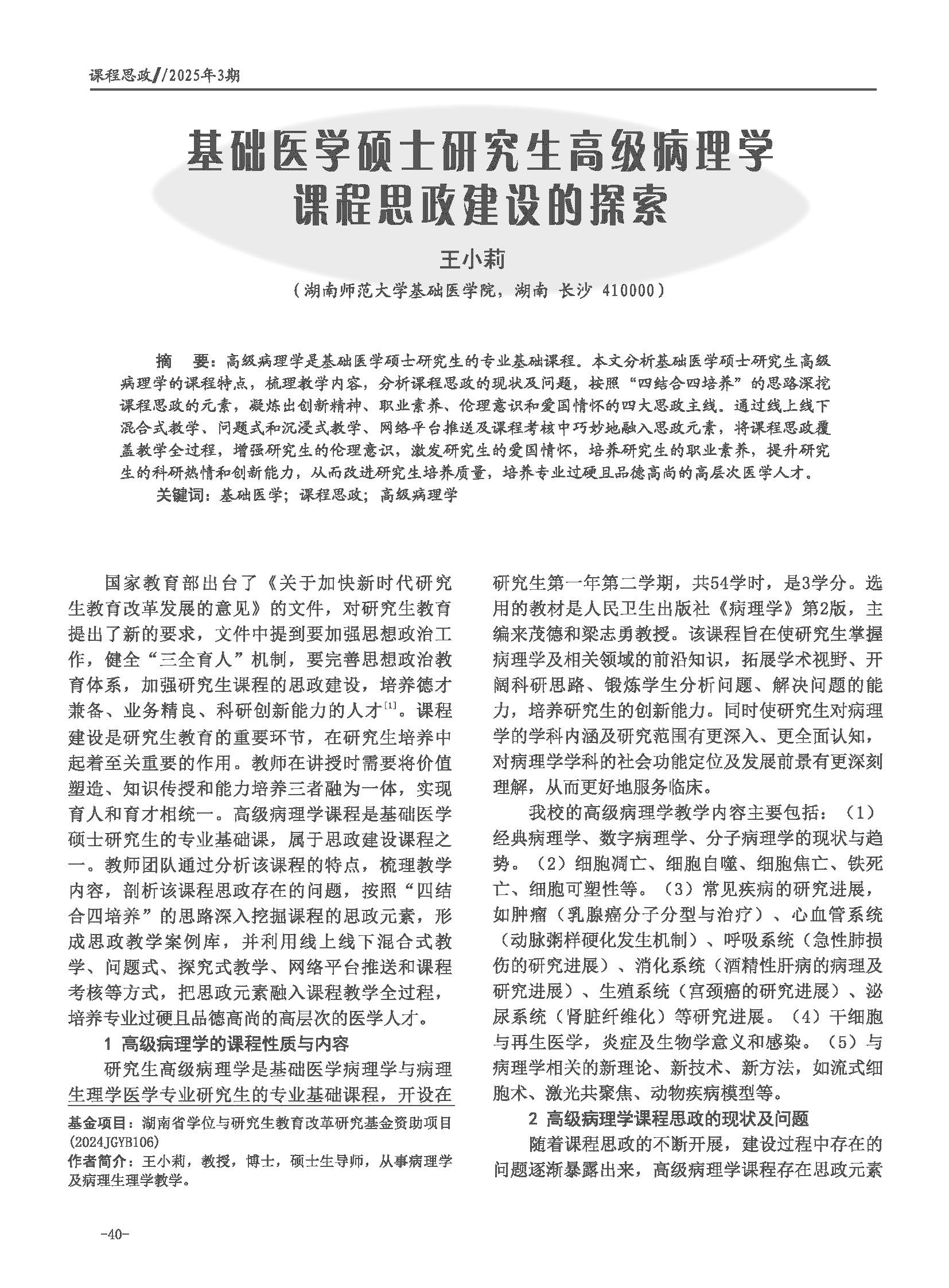 基础医学硕士研究生高级病理学课程思政建设的探索