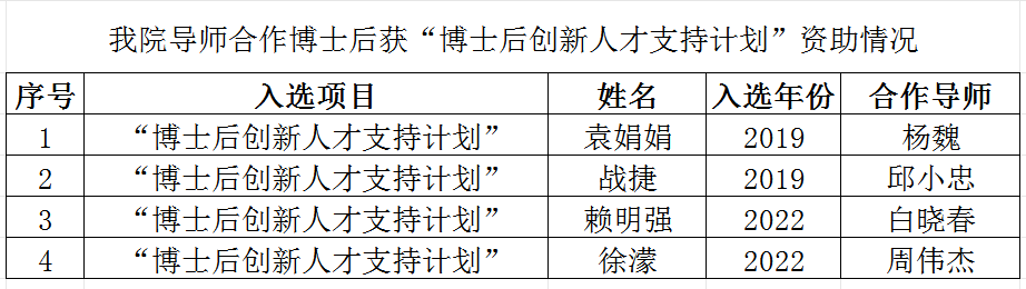 我院导师合作博士后获“博士后创新人才支持计划”资助情况