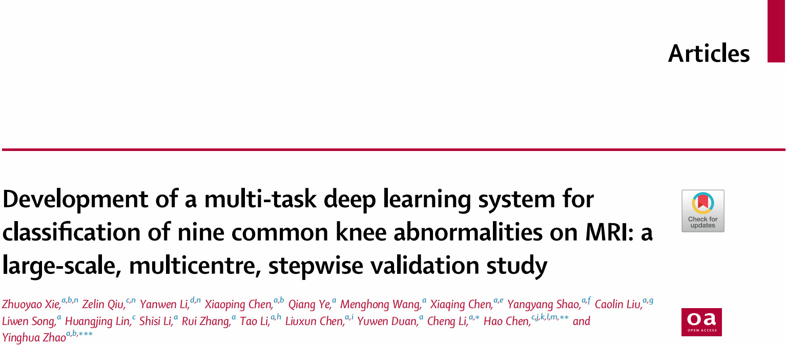 该研究登上了柳叶刀子刊《EClinical Medicine》。团队正在将技术拓展至肩关节、髋关节等其他部位的疾病诊断,致力于打造全方位的运动系统疾病AI辅助诊断平台。未来,团队下一步将开展前瞻性多中心临床试验,进一步验证系统在真实临床环境中的效果。