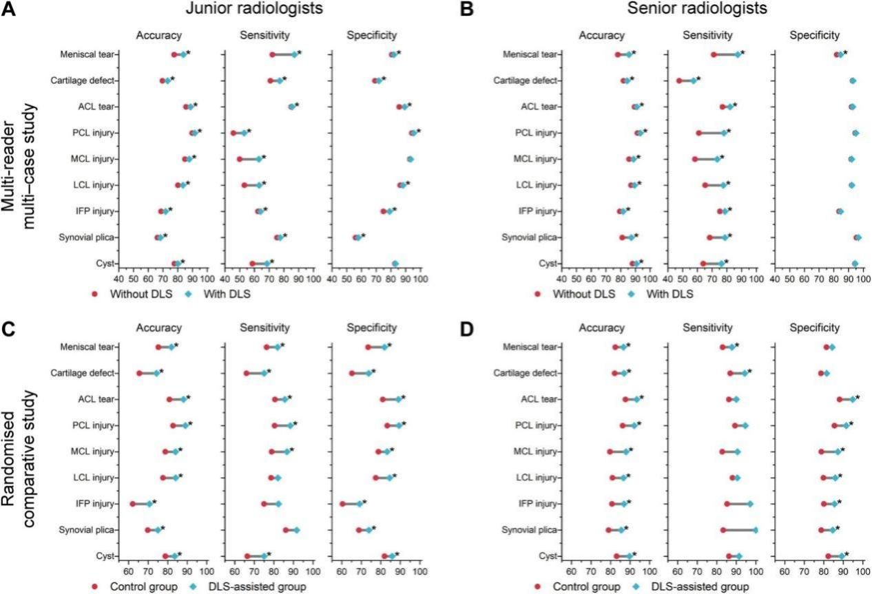 图3:放射科医师在DLS辅助前后的诊断性能对比