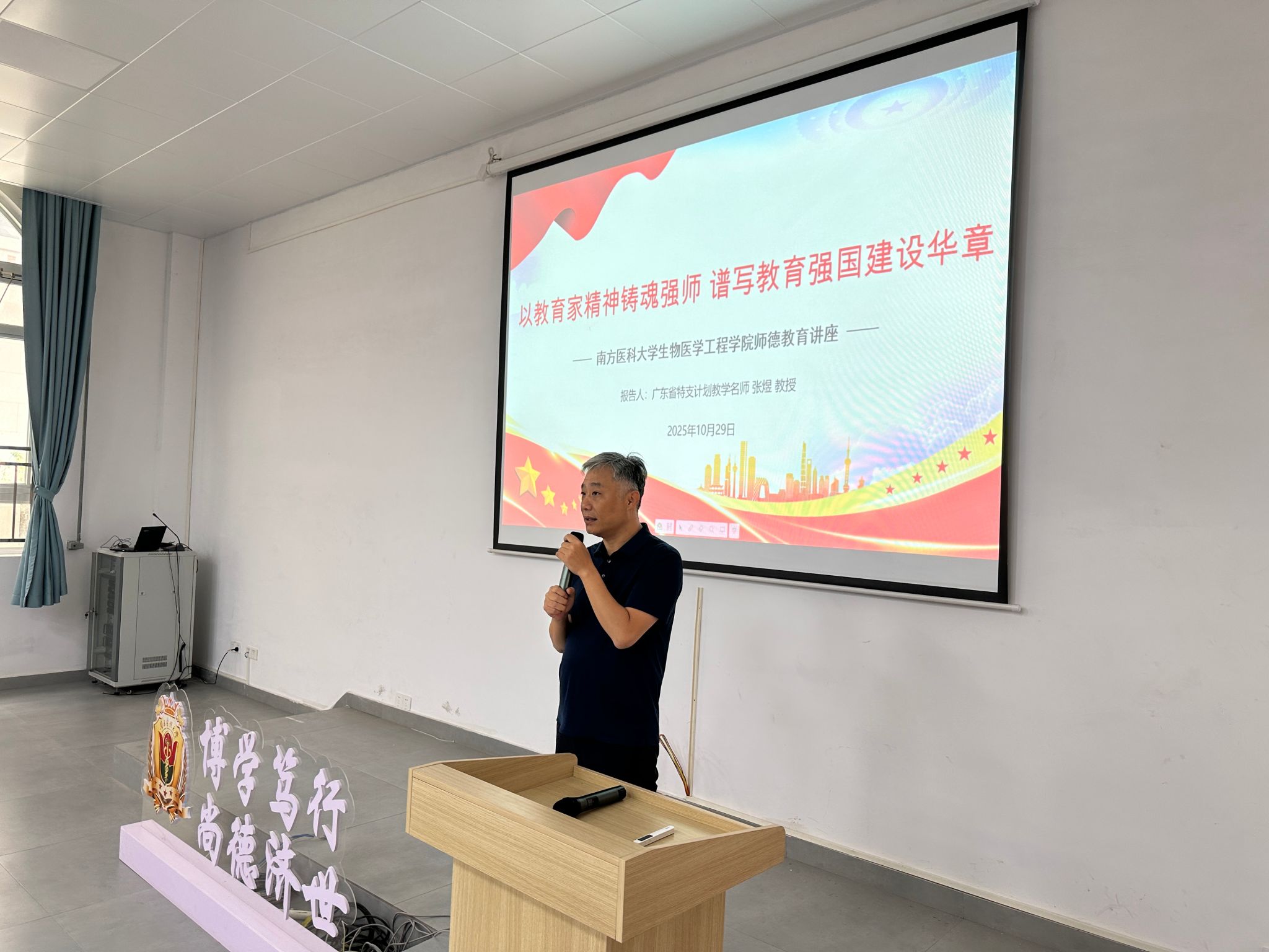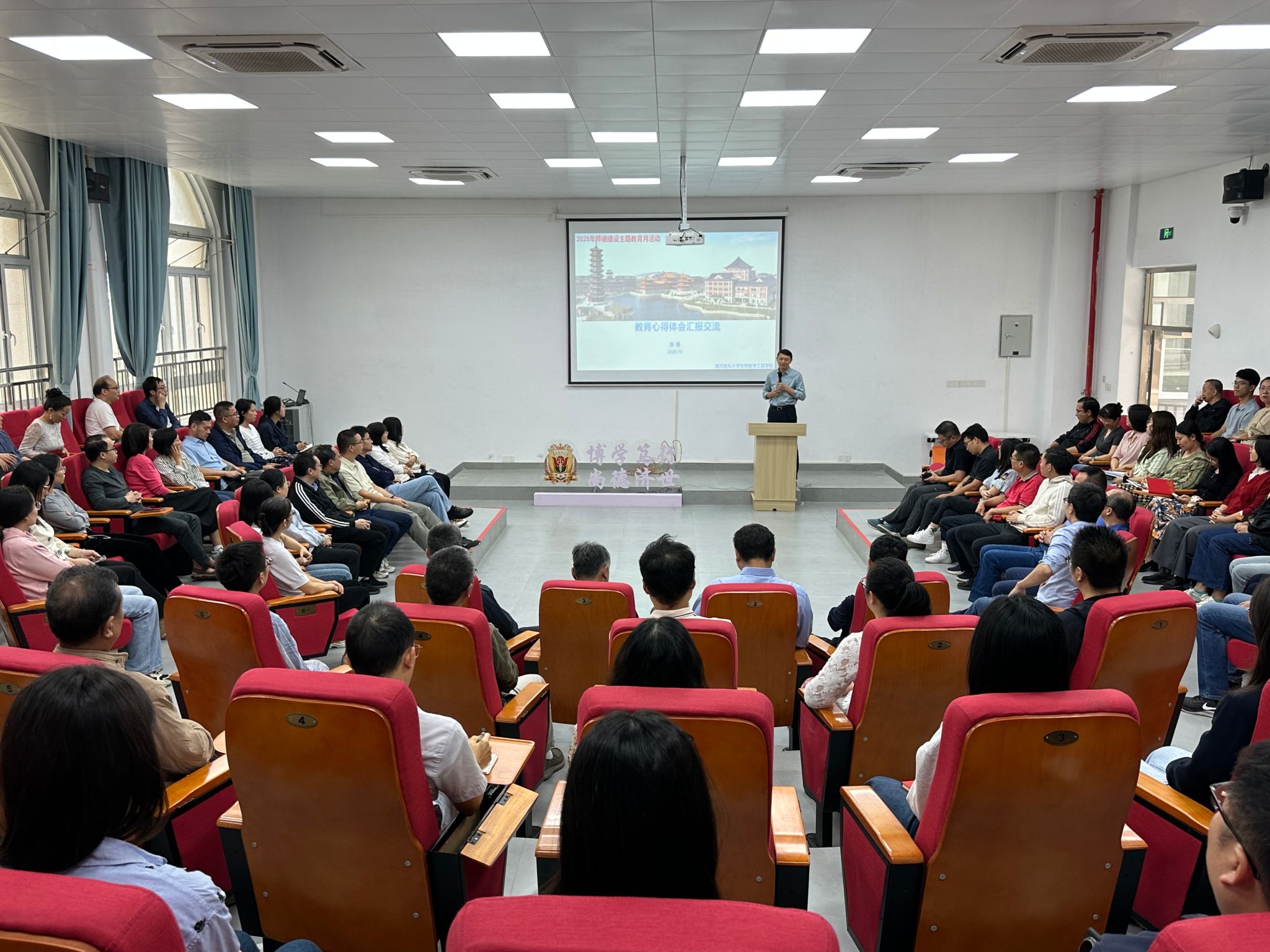 为深入学习习近平总书记关于教育的重要论述以及对教师工作的批示指示精神,引领全体教师守好讲台主阵地,10月29日上午,生物医学工程学院以“教育家精神铸魂强师,谱写教育强国建设华章”为主题举办师德专题讲座,学院副院长,广东省特支计划教学名师张煜教授受邀主讲,全院近百名专任教师齐聚会场,共悟师德内涵,重温育人初心。讲座由院长冯前进主持。