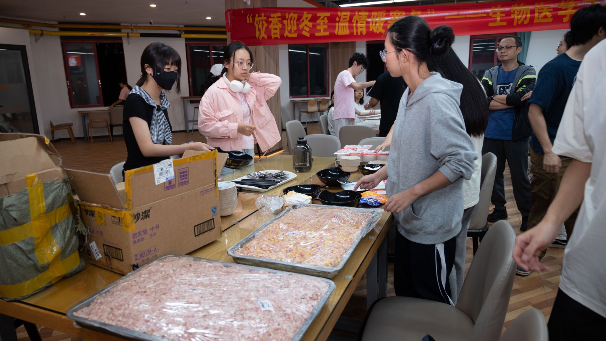 岁至冬至,寒意渐浓。12 月 21 日傍晚,顺德校区陶然轩二楼暖意融融,生物医学工程学院 “饺香迎冬至,温情暖寒冬” 主题活动在此温馨启幕。学院辅导员以及本科生等近百名师生欢聚一堂,以包饺品食、互动交流的传统方式,共赴一场冬日里的团圆之约,在欢声笑语中感受中华传统文化魅力,凝聚学院发展温情。