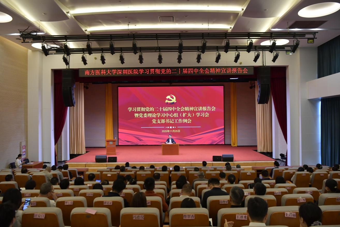 11月25日,深圳医院召开学习贯彻党的二十届四中全会精神宣讲报告会,专题宣讲党的二十届四中全会精神,集中学习习近平总书记视察广东和出席第十五届全国运动会开幕式重要讲话、重要指示精神,并就贯彻落实工作进行部署。