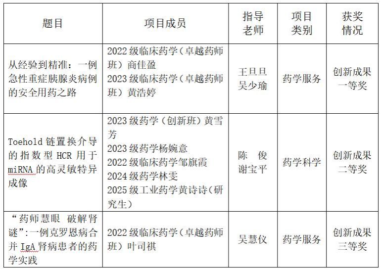 此次比赛为我们提供了宝贵的交流和学习平台,学院将持续深化“赛教融合、赛研结合”育人模式,进一步整合校内外资源,推动药学人才培养质量再上新台阶,力争在未来的赛事中取得更加优异的成绩。