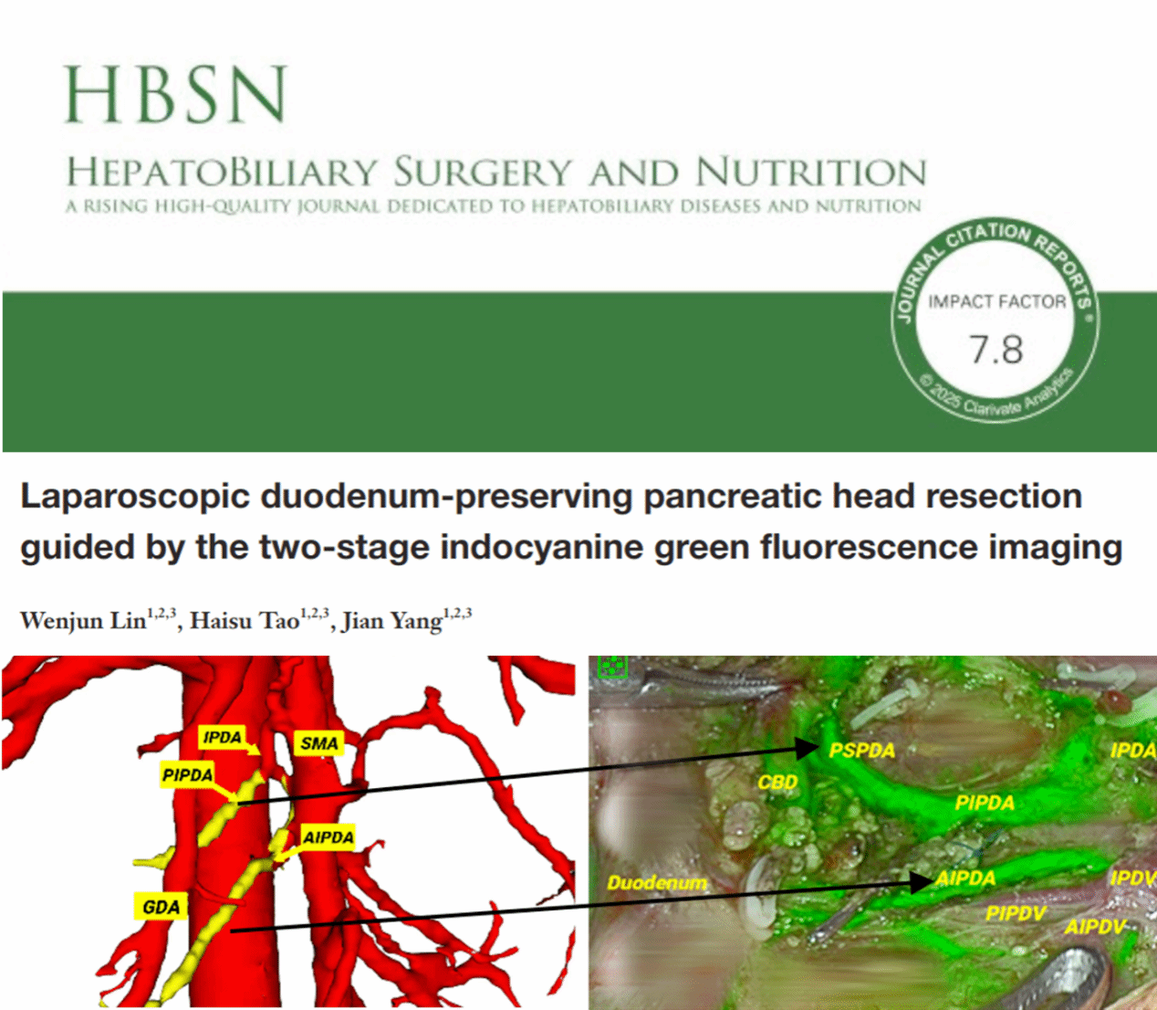 相关成果发表于外科学顶级期刊《Hepatobiliary Surgery and Nutrition》上,为微创胰腺保功能手术的精准执行再添“珠江数智方案”。杨剑为唯一通讯作者,林文俊为第一作者。