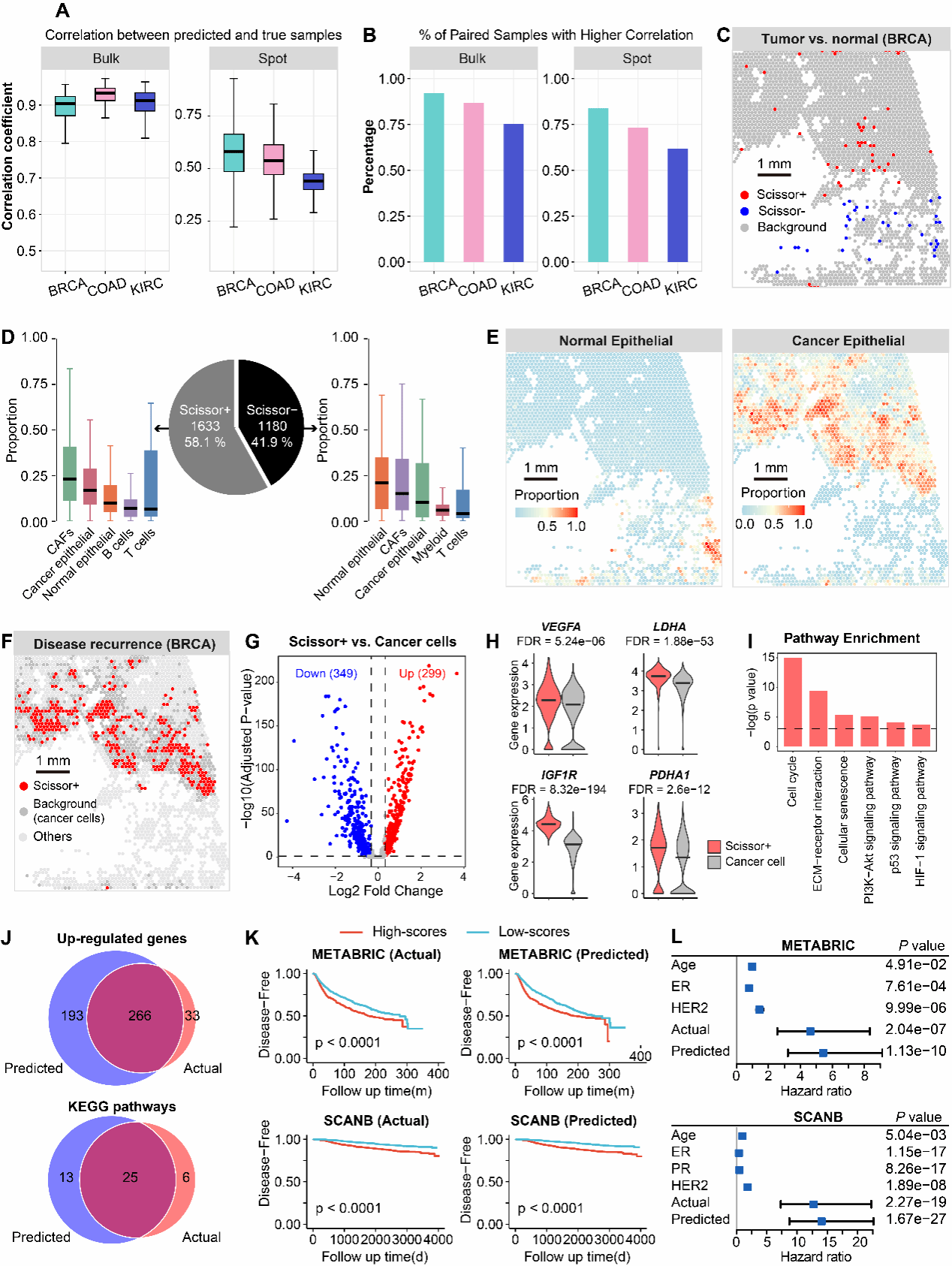 肿瘤内部存在明显异质性,不同区域的细胞状态和分子特征往往并不相同。识别与疾病进展、复发风险和治疗反应相关的细胞亚群,对于准确判断病情、发现预后标志物和制定针对性治疗方案具有重要意义。然而,这类分析通常依赖额外分子检测,成本较高,应用也受到一定限制。针对这一问题,研究团队提出了基于常规病理全切片图像的多尺度基因表达预测框架BiSCALE,尝试同时预测组织尺度和近细胞尺度的基因表达信息。