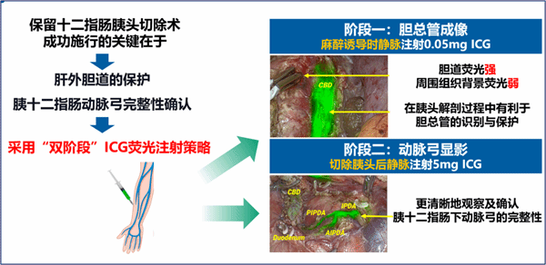 摘要:针对慢性胰腺炎及胰头肿瘤治疗中保留器官完整性与微创化的临床需求,珠江医院肝胆一科主任杨剑团队创新提出 “双阶段”荧光导航技术,实现了胆管和胰腺细小动脉的清晰显影,为外科医生提供了实时的术中可视化导航和决策支持,有效减少LDPPHR术后胆道并发症和十二指肠血供障碍的发生率。吲哚菁绿(ICG)荧光作为一种可以实时显影胆道和血管的导航技术,是辅助LDPPHR精准执行的有效手段。由于ICG成像质量与注射剂量及时间密切相关...